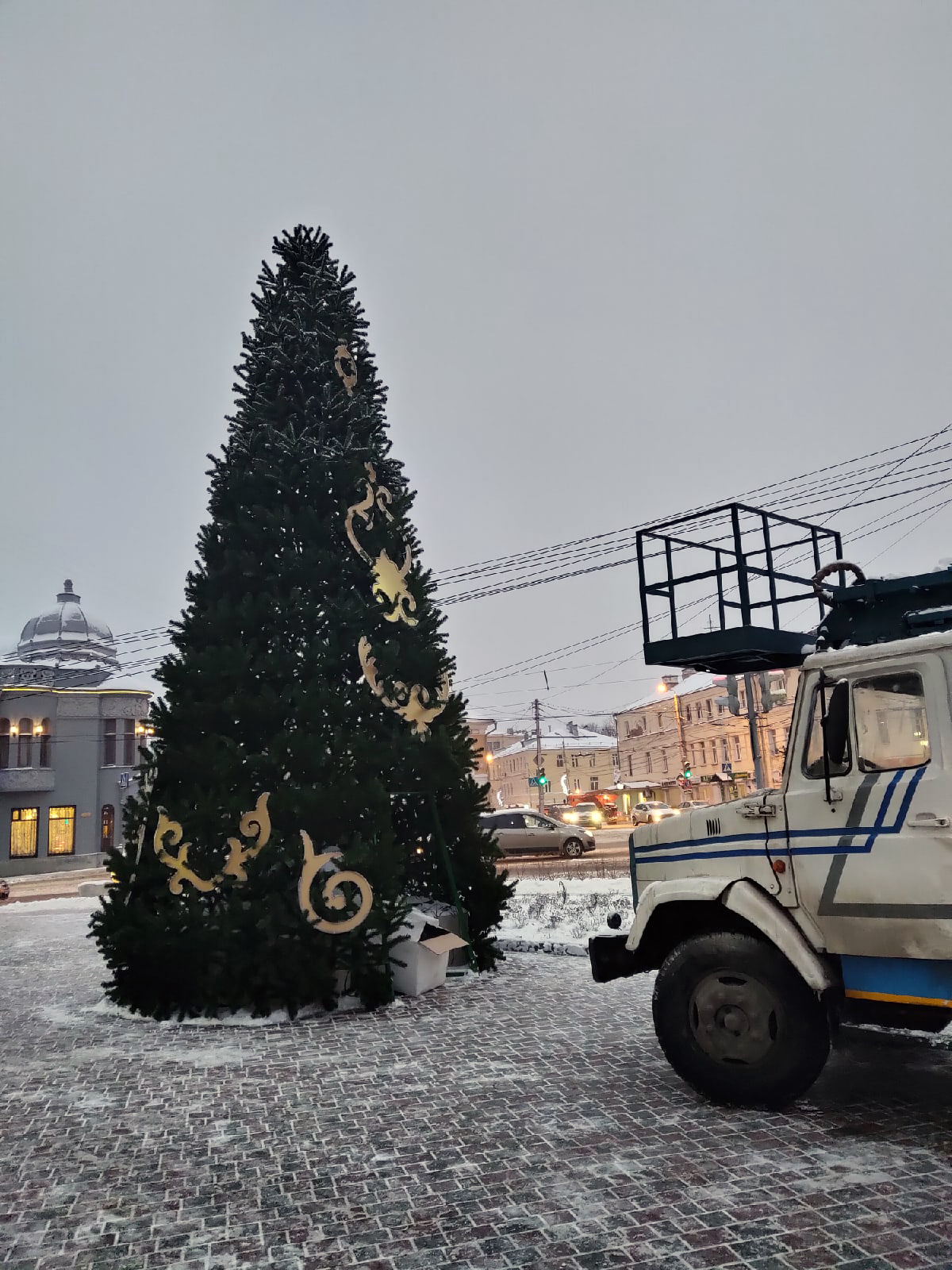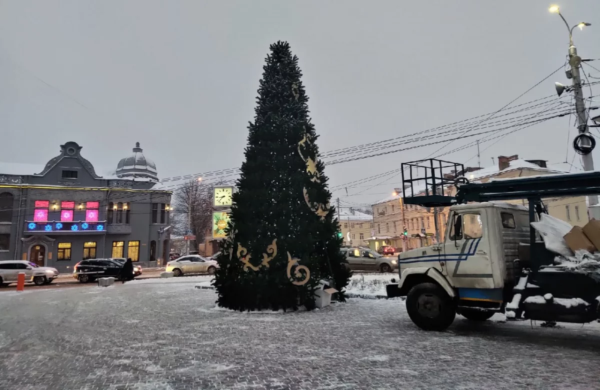 Во вторник, 15 декабря, рядом со зданием городской управы в Калуге на Ленина, 93 монтируют елку.