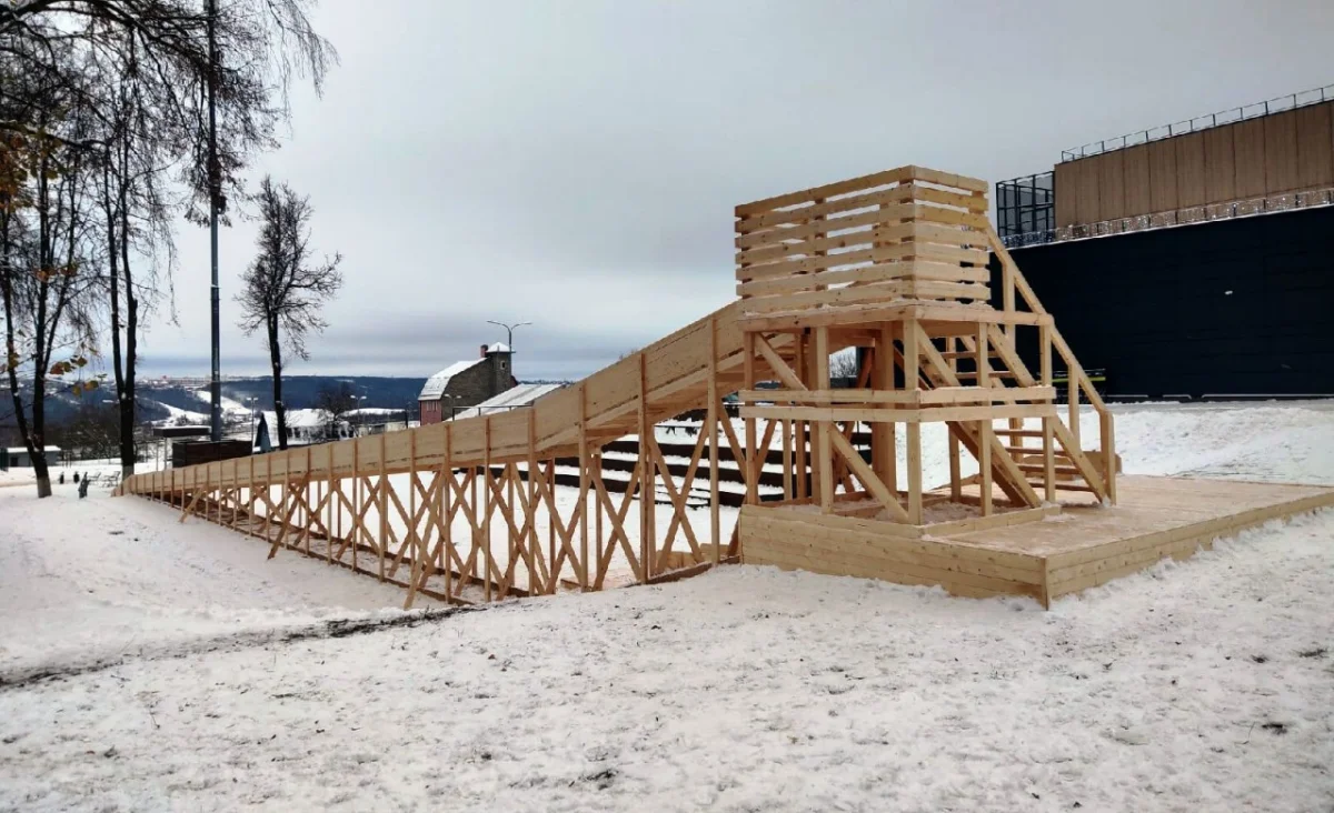 В Калуге завершился монтаж деревянной горки рядом с Инновационным культурным центром на улице Октябрьской. Конструкцию уже активно испытывают дети из окрестных домов.