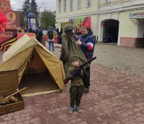 На улицах города встречается много реконструкторов ВОВ с советской военной техникой.
