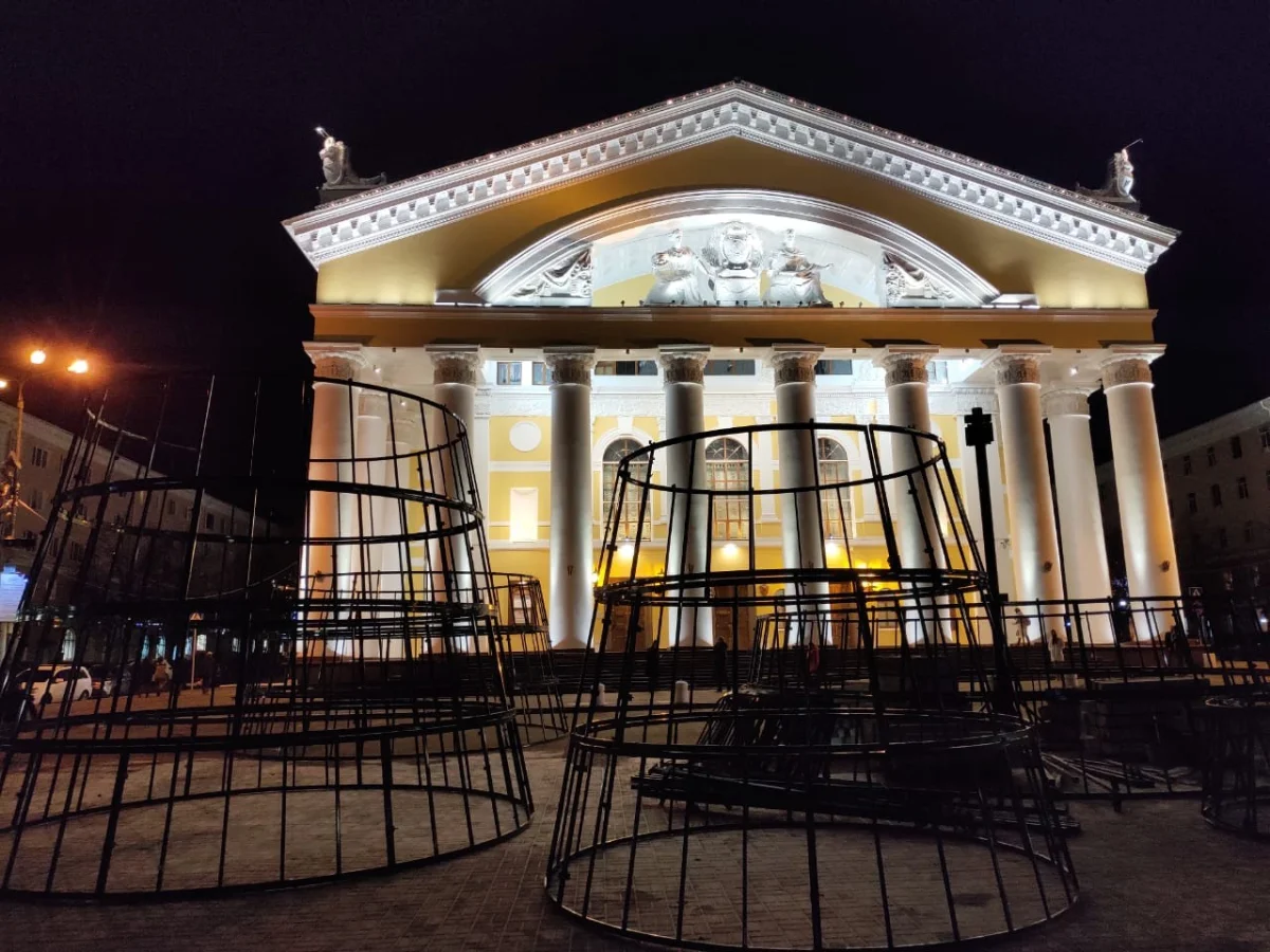 Первую новогоднюю елку Калуги начали устанавливать на Театральной площади