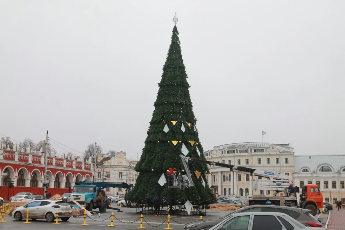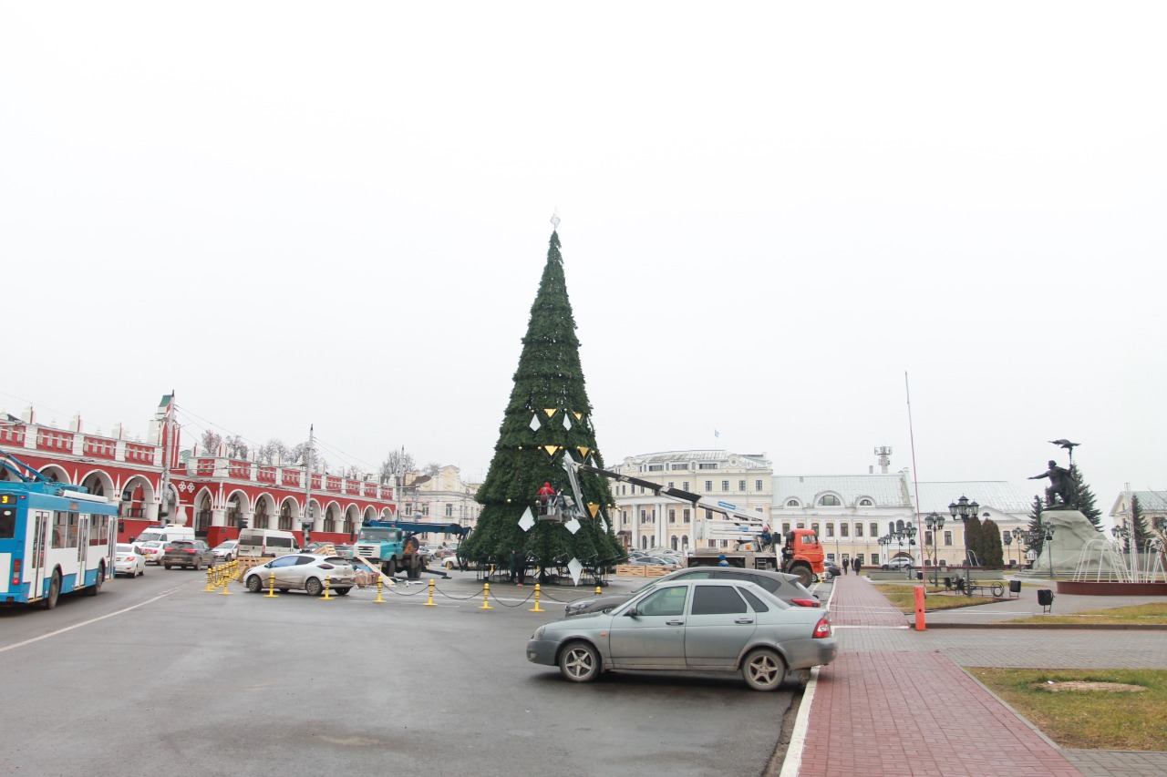 В Калуге начали украшать главную новогоднюю елку на площади Старый Торг