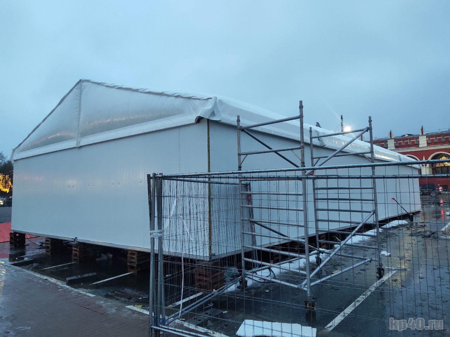 На площади Старый Торг в Калуге продолжается монтаж временного катка.