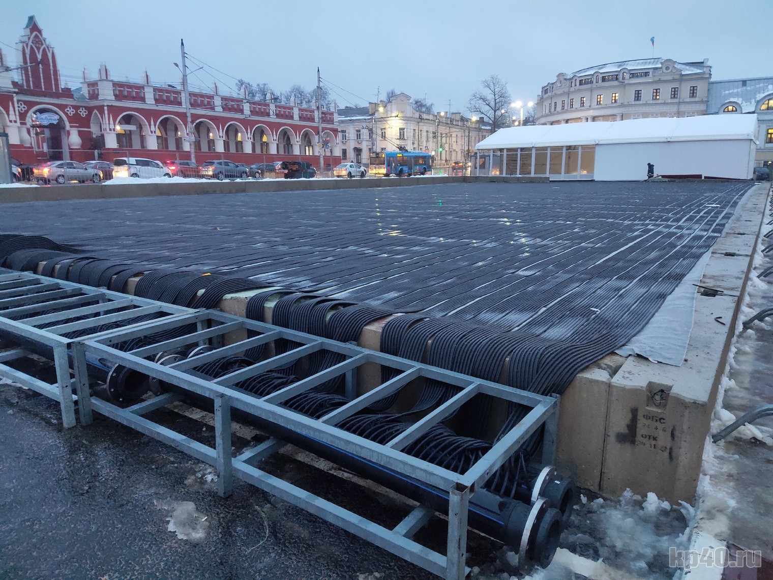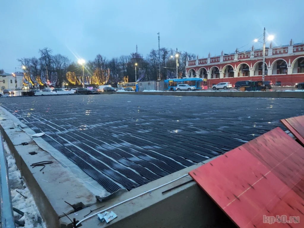 В Калуге смонтировали охлаждающие плиты на катке перед областной администрацией