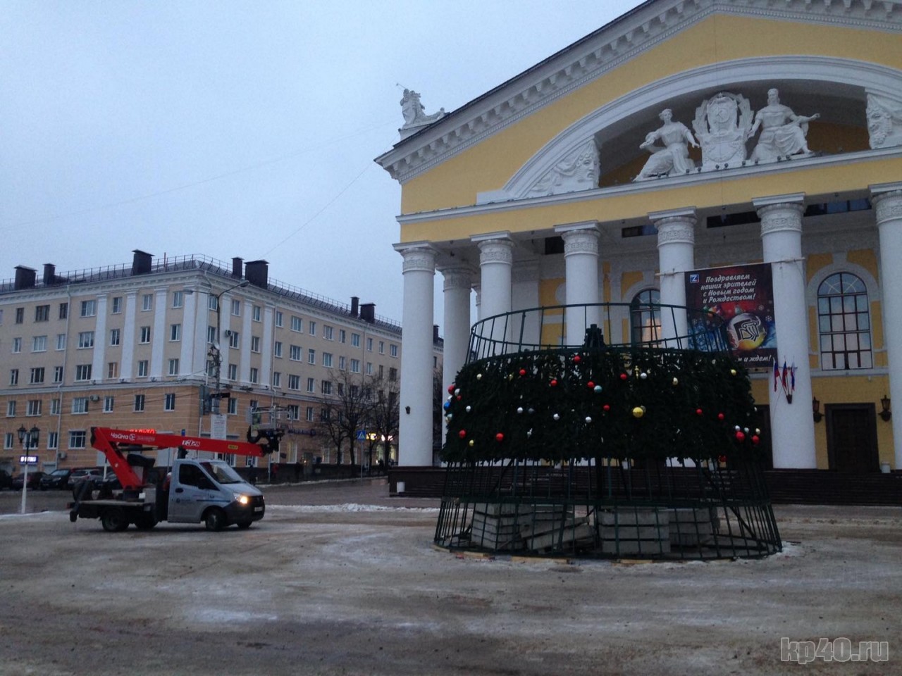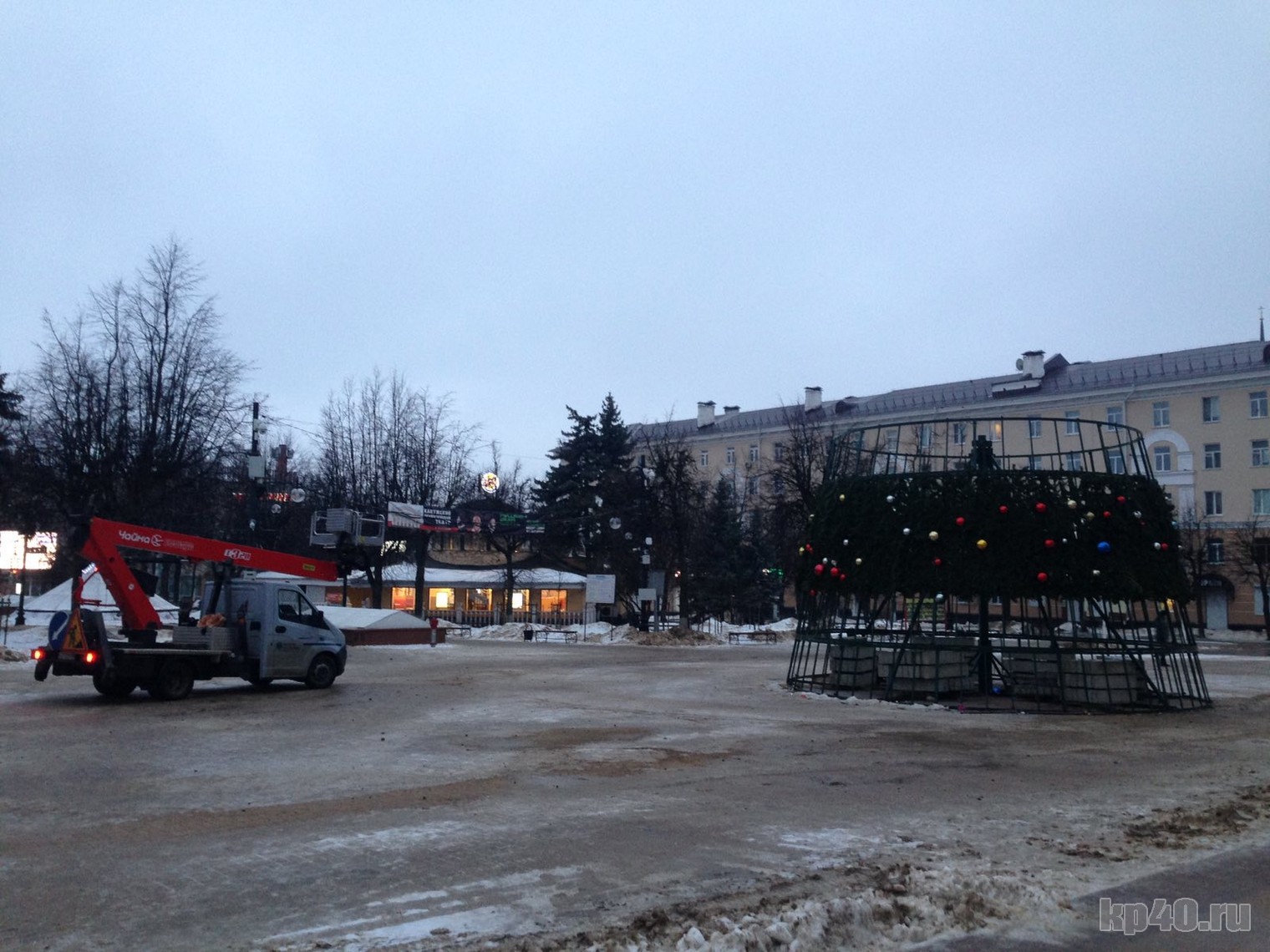 В Калуге на Театральной площади начали разбирать главную елку города. Фото сделаны утром в среду, 18 января.
