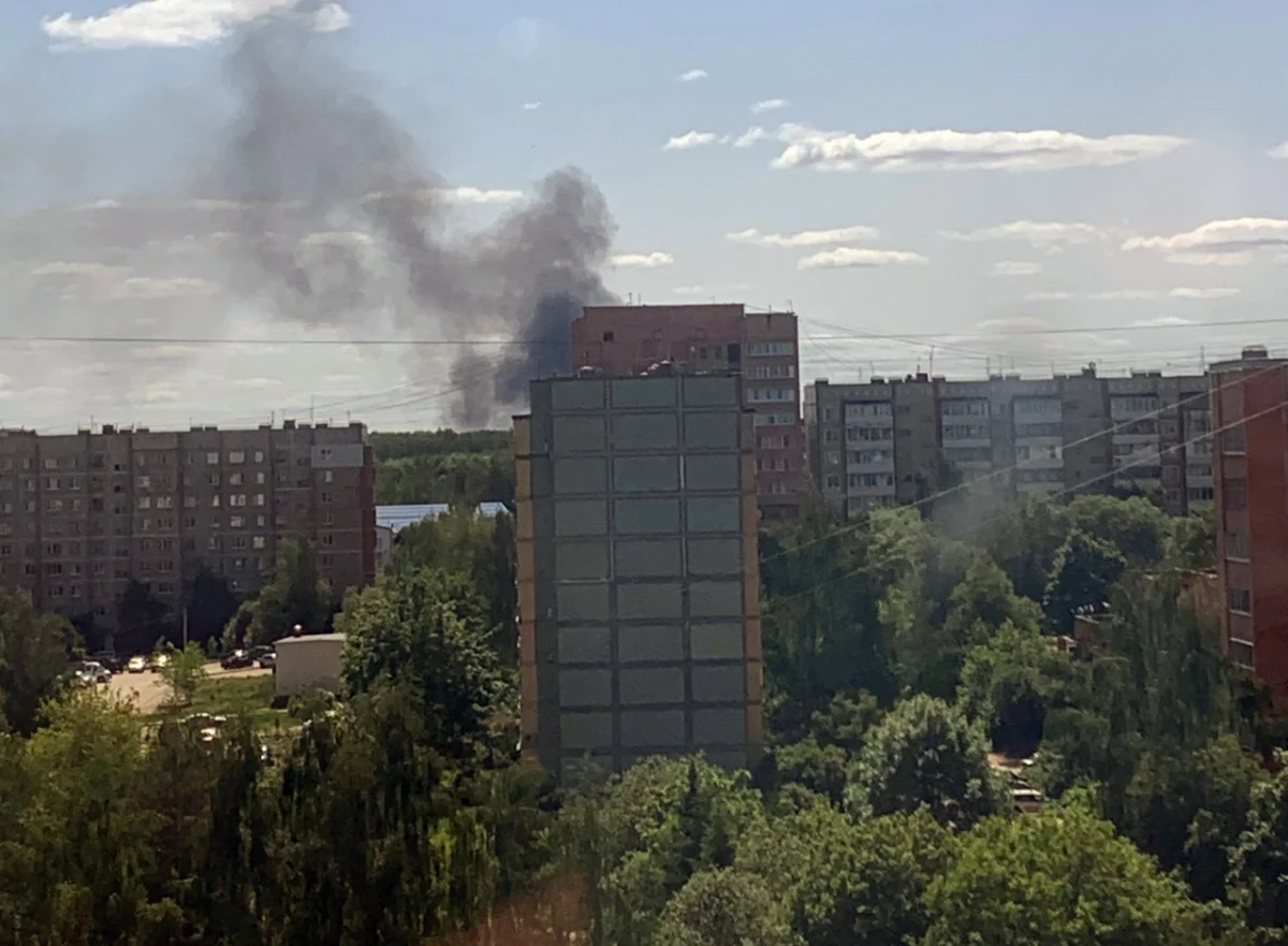 Днем в понедельник, 29 мая, жители Правобережья Калуги наблюдали черный дым. Фото выложили в официальном сообществе Правого берега в ВК.