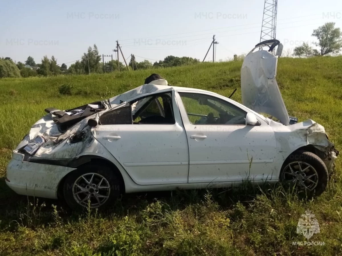 В деревне Егорье автомобиль «Шкода» вылетел в кювет и перевернулся.