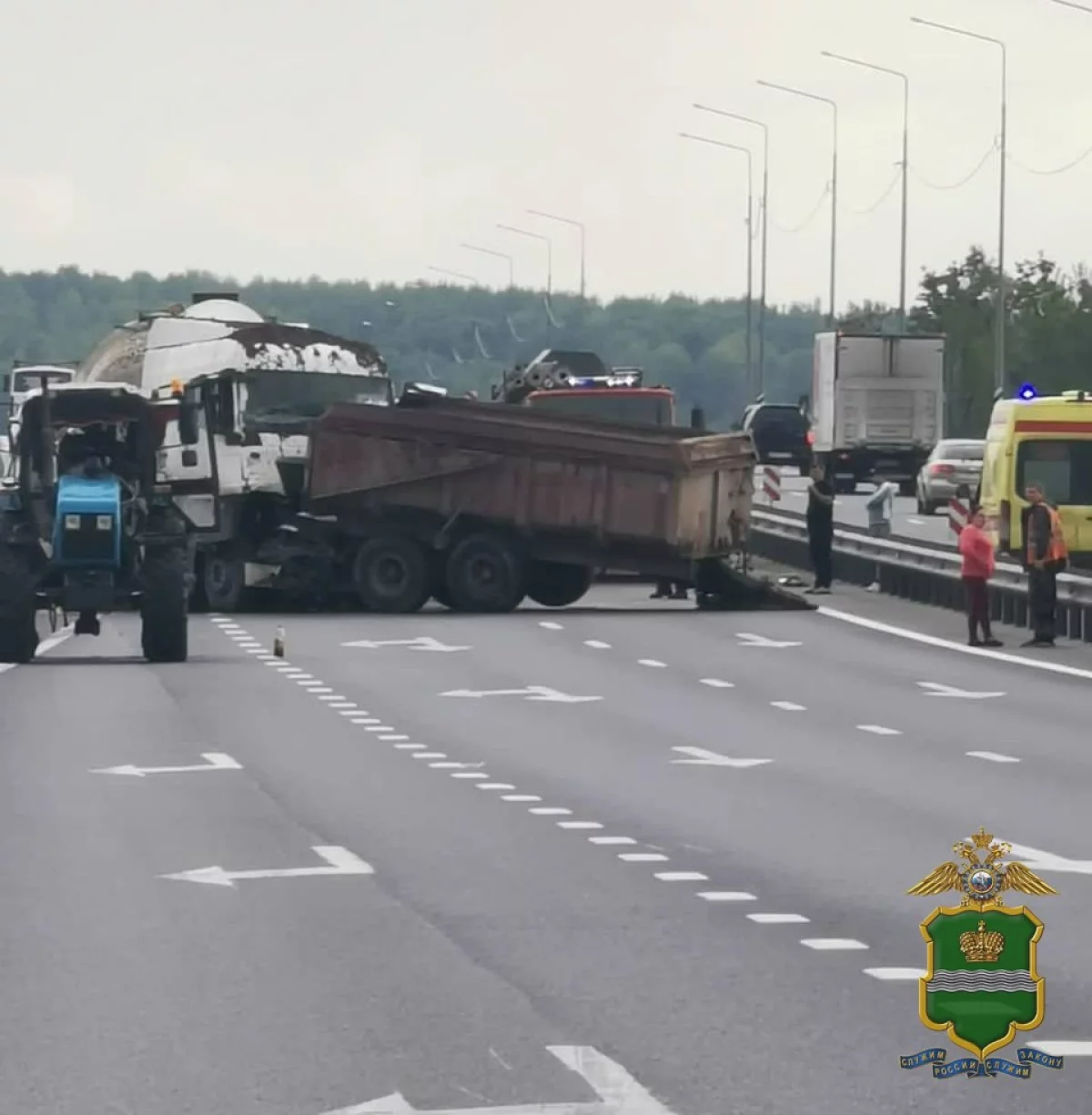 Предварительно, водитель грузовика «Ман» не рассчитал дистанцию и врезался в трактор с прицепом.