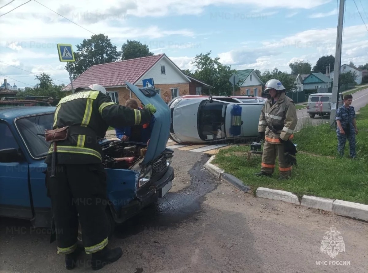 В Калужской области «Лада» завалилась на бок после столкновения с автомобилем «ВАЗ»