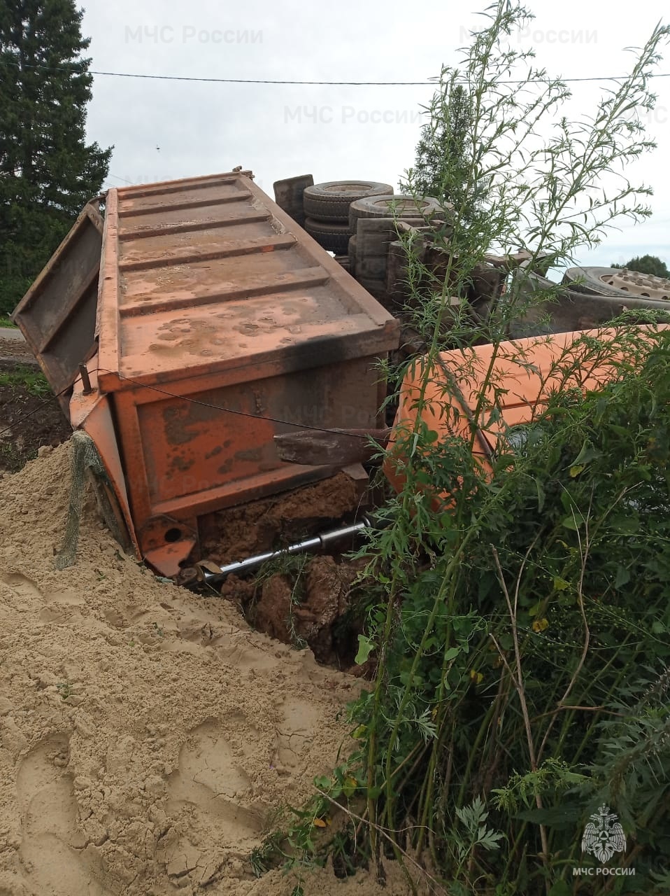 В 09 часов 50 минут в селе Пятницкое автомобиль «МАЗ», груженный песком, съехал в кювет и там опрокинулся на бок. В ДТП пострадал водитель грузовика. тяжесть его травм уточняется.