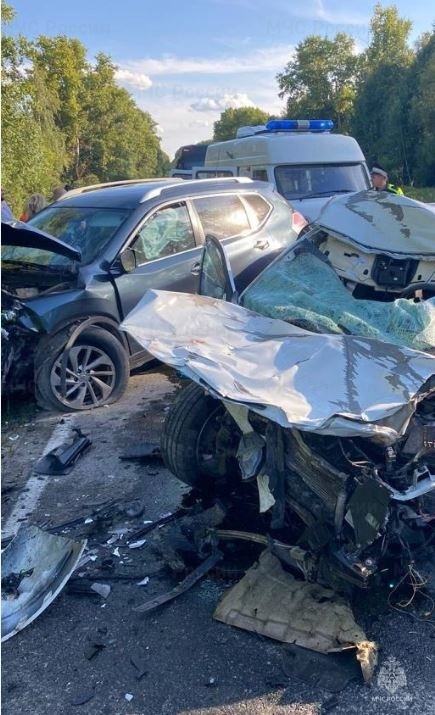 Вечером в воскресенье, 30 июля, на дороге между Козельском и Перемышлем в Калужской области произошло массовое ДТП. Фото с места происшествия опубликовали в ГУ МЧС по Калужской области.