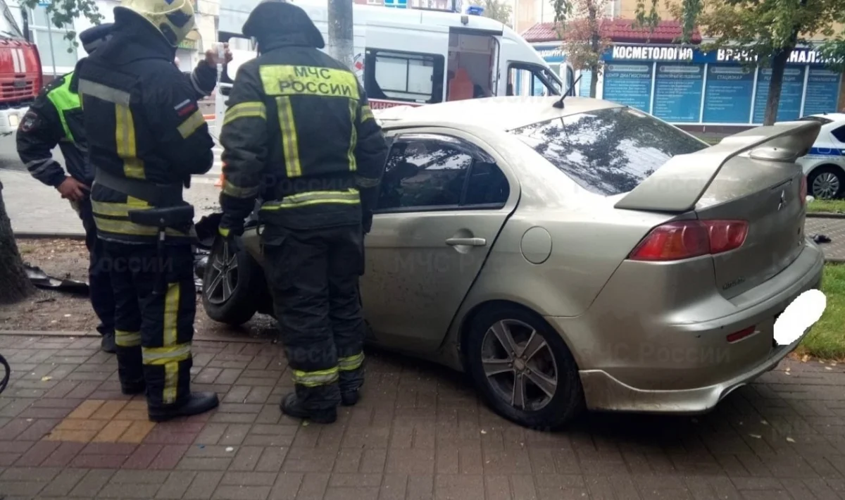 В Калуге на улице Луначарского «Мицубиси» влетела в столб