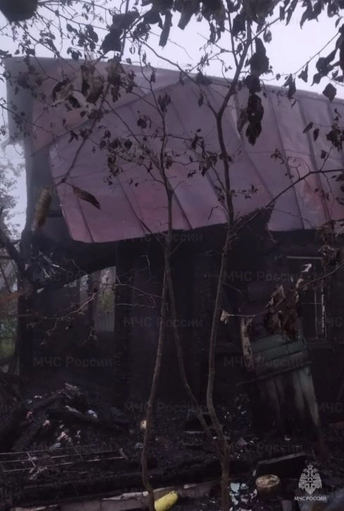Огонь нанес серьезные повреждения деревянном строению.