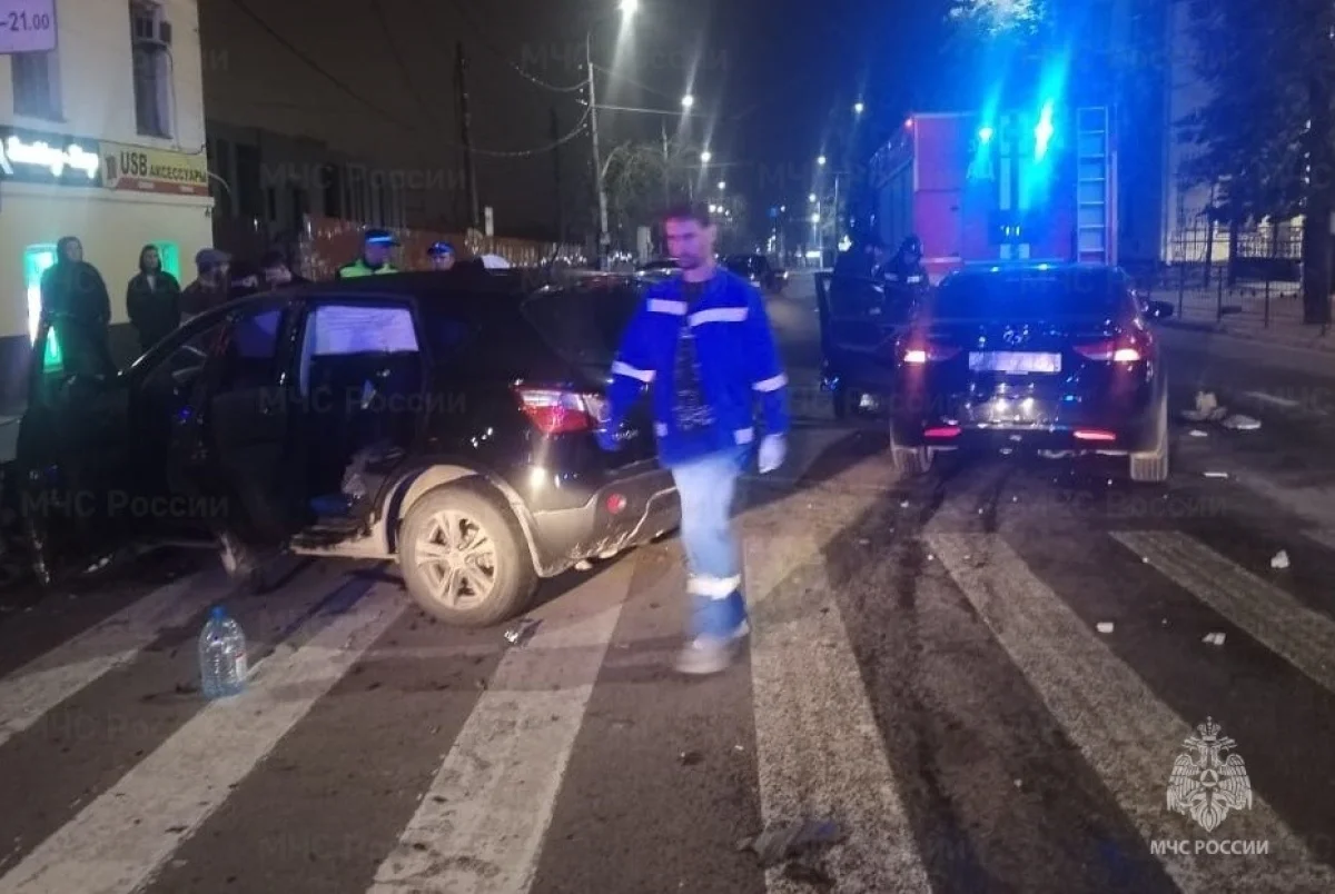 Около 23:30 во вторник, 29 августа, на перекрестке улиц Кирова и Рылеева в Калуге произошло ДТП. Фото с места аварии опубликовало ГУ МЧС по Калужской области.