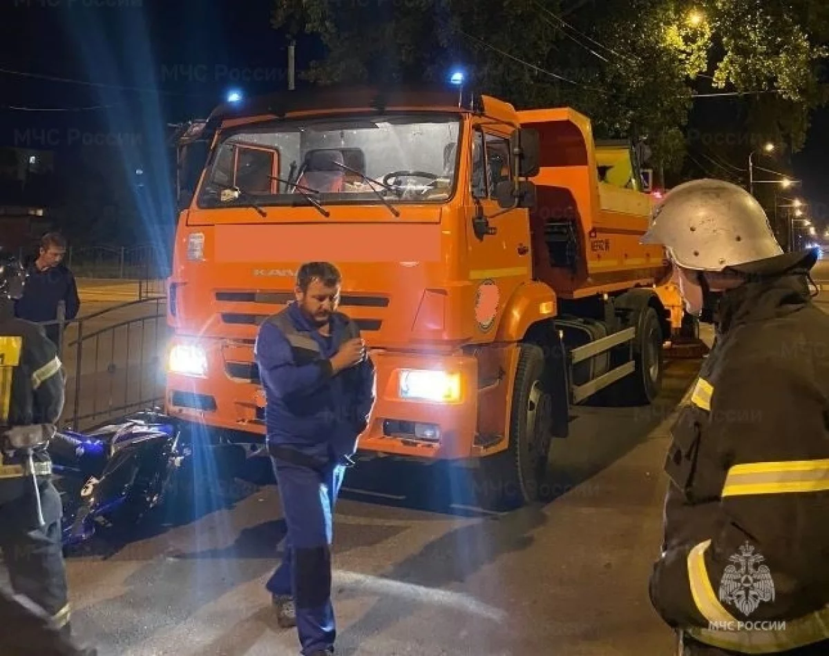 Около 22:30 в понедельник, 11 сентября, на улице Тарутинской в Калуге произошло ДТП с участием легковушки, грузовика и мотоцикла. Фото с места аварии опубликовало ГУ МЧС по Калужской области.