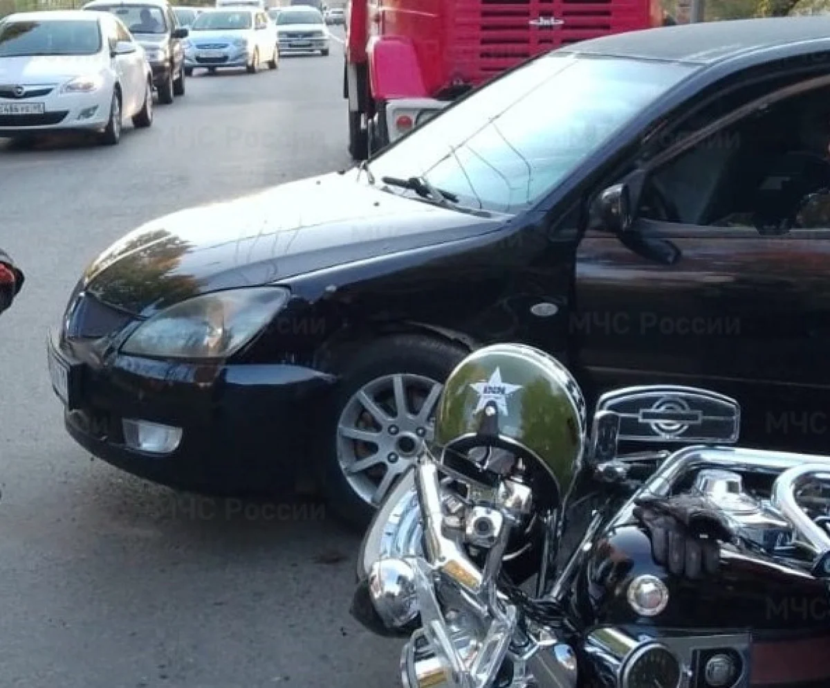 По предварительным данным, там столкнулись байкер на Harley-Davidson и легковой автомобиль Mitsubishi Lancer.