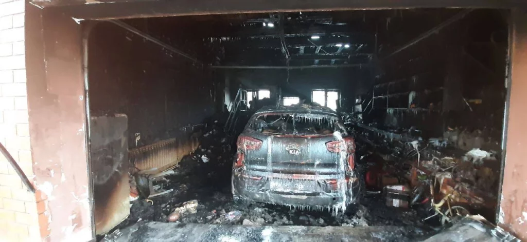 По предварительным данным, загорелся встроенный в дом гараж. Огонь уничтожил находившийся внутри автомобиль «Киа».