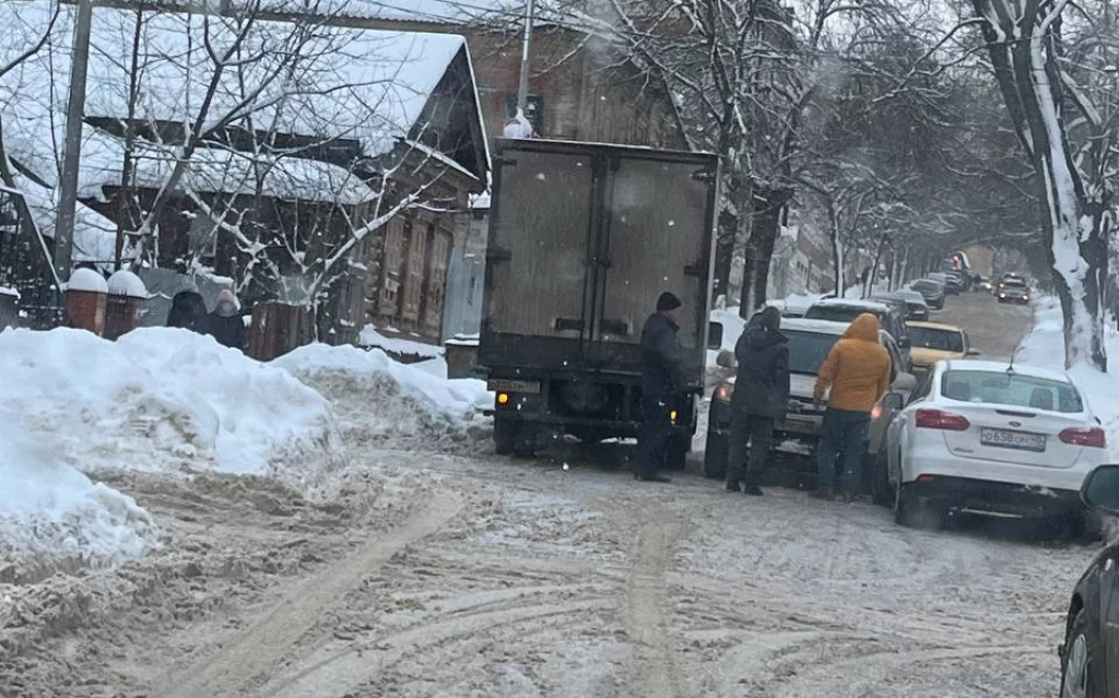 На улице Никитина ДТП полностью перекрыло движение в районе оврага.