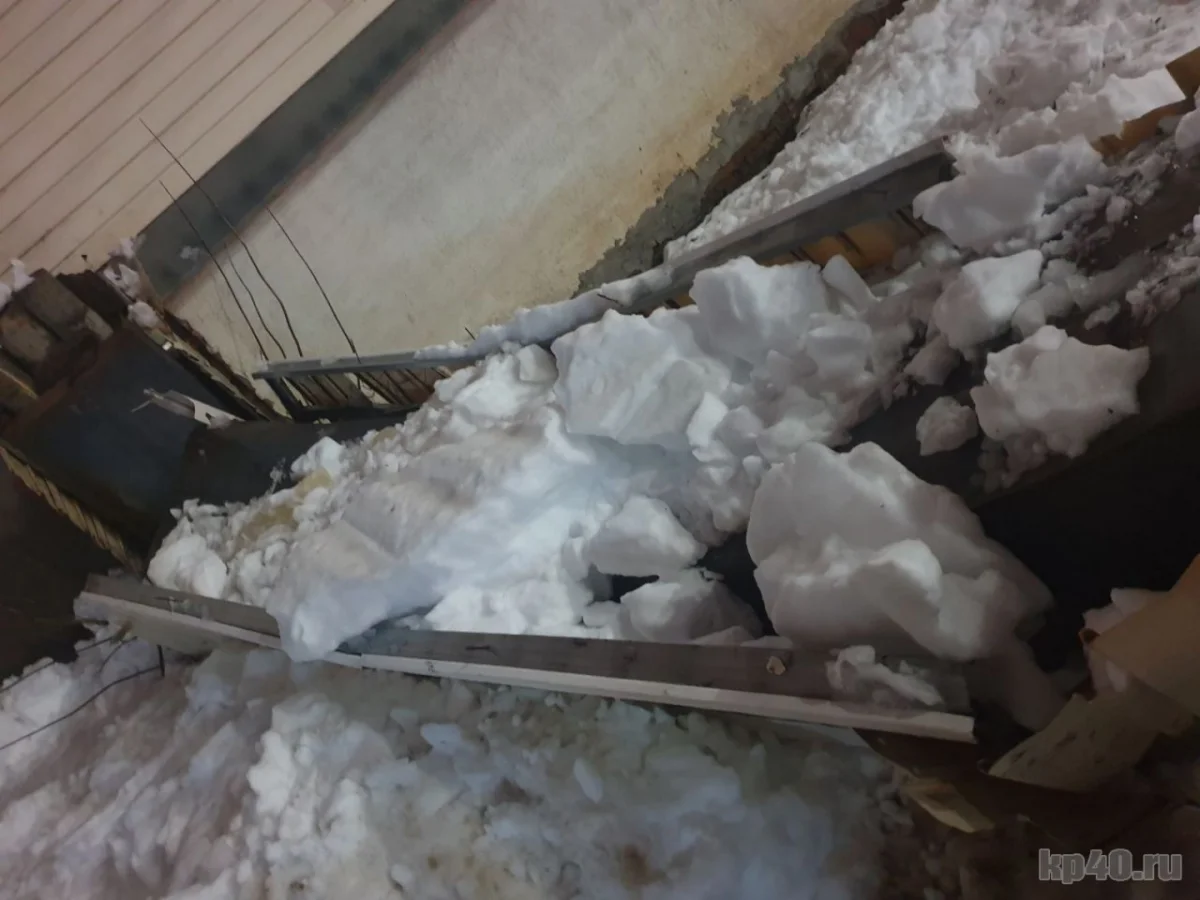 В понедельник, 18 декабря, глыба льда с крыши дома №49 на улице Королева упала на соседний частный дом №55. Она повредила газовую вытяжку.