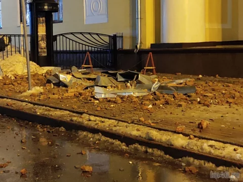 В Калуге часть крыши драмтеатра обрушилась на тротуар