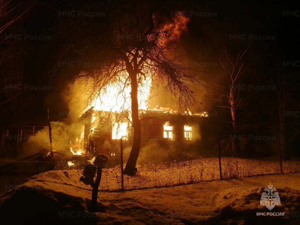 Огонь уничтожил деревянное здание на улице Рождественской.