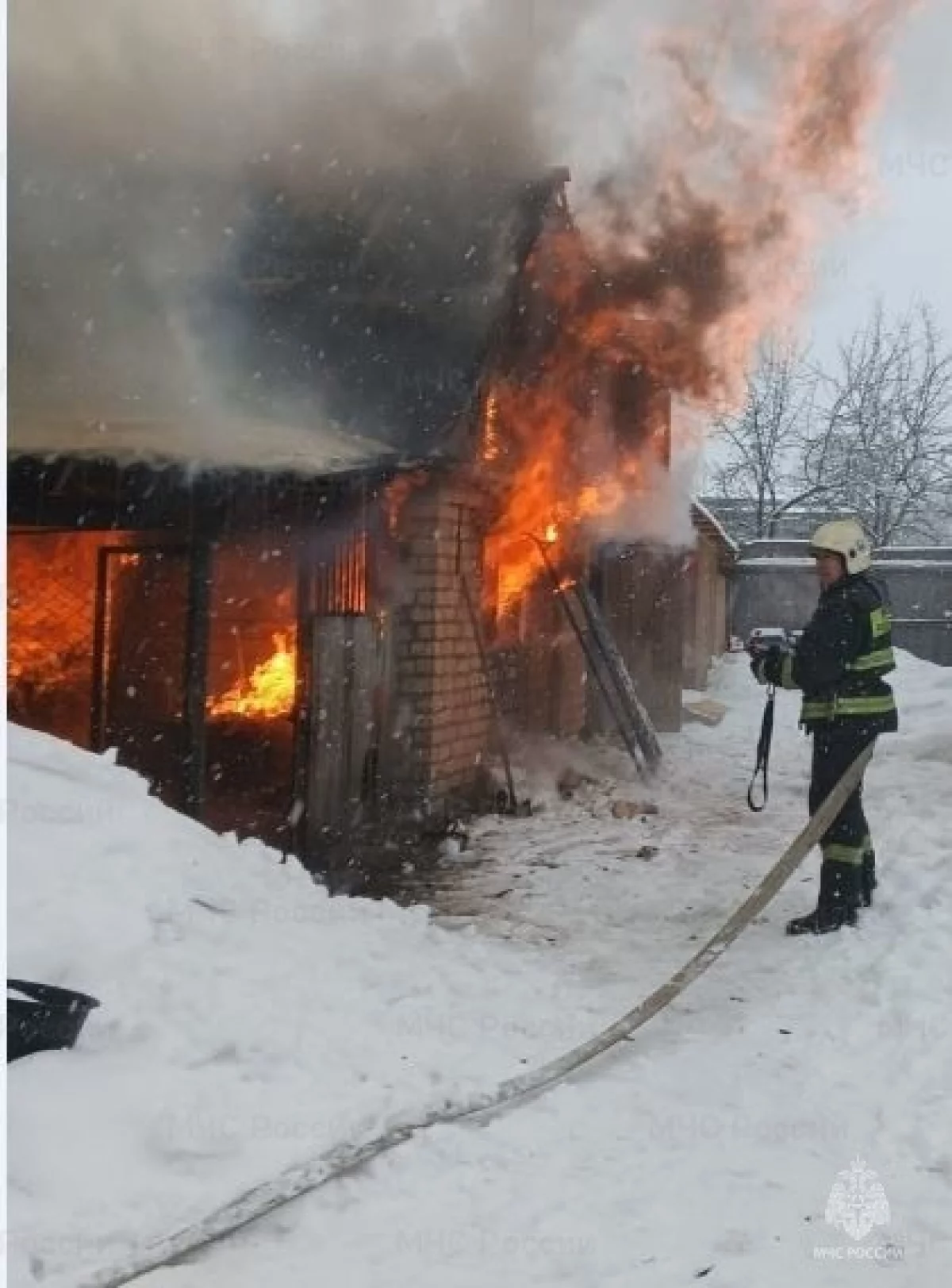 Примерно в 12:50 там загорелась хозяйственная постройка рядом с частным домом.