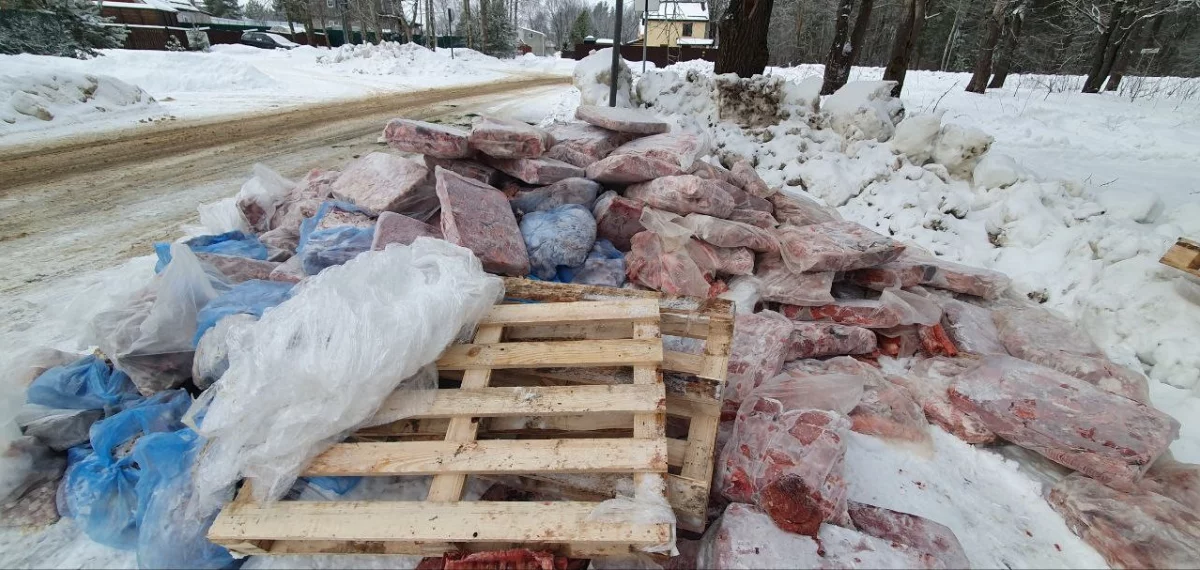 Как мы уже рассказывали, в деревне Сивково на территории Калуги мясо вывалили прямо на дорогу.