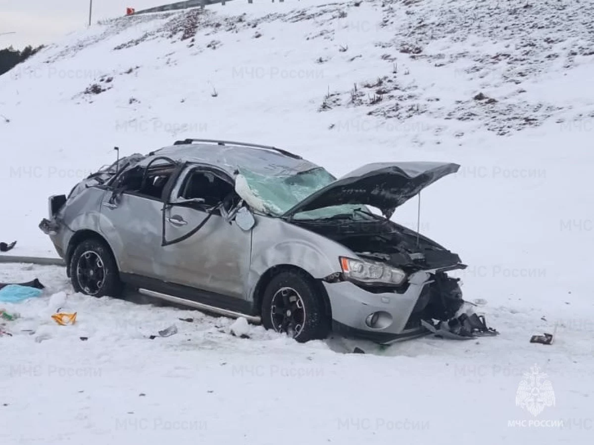 В Калужской области легковой автомобиль влетел в отбойник и перевернулся
