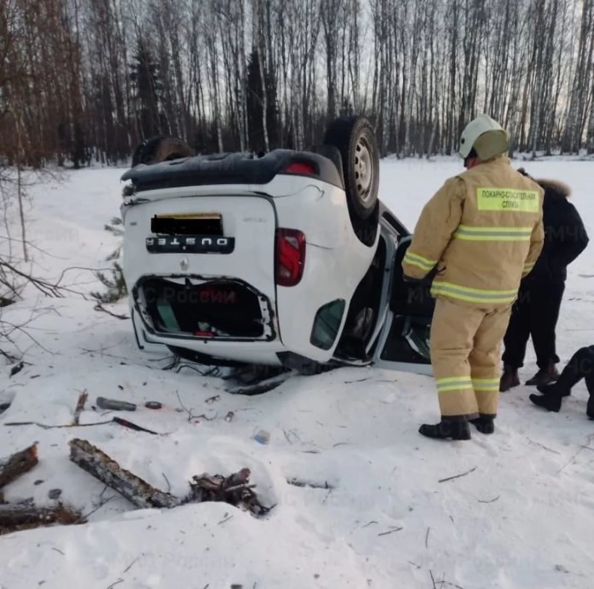 Предварительно, 75-летний водитель за рулем «Рено Дастер» вылетел с дороги в кювет, где автомобиль перевернулся на крышу.