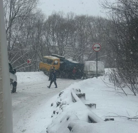На улице Советской, на горке столкнулись «КамАЗ» и «Газель».