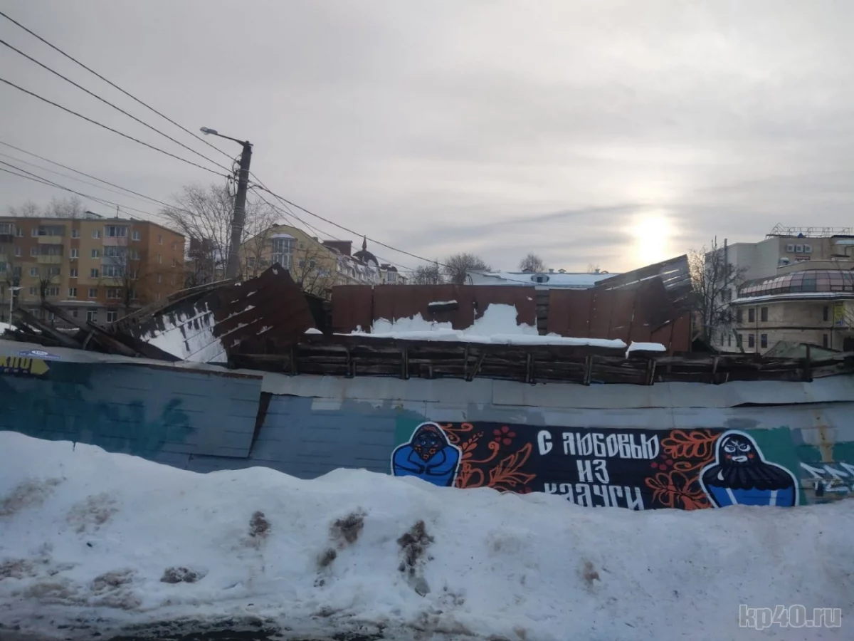 На длинных выходных здание на улице Достоевского не выдержало тяжести снега и льда, копившихся на кровле.