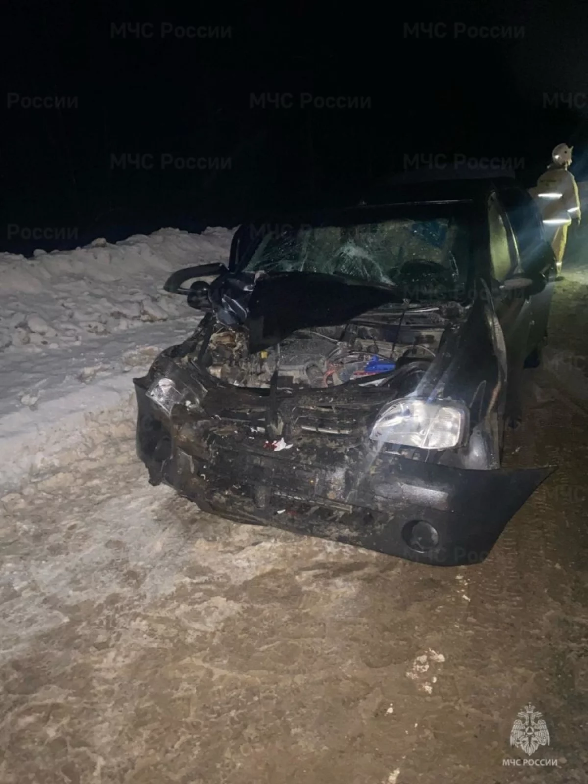 По предварительным данным, 57-летний водитель «Рено Логан» ехал со стороны Москвы и врезался в стоящий грузовик.