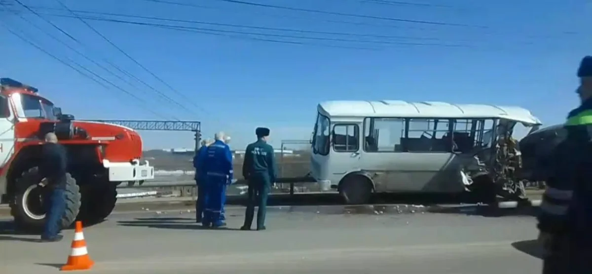 В пятницу, 29 марта, пассажирский ПАЗик столкнулся с «Уралом» на Азаровском мосту.