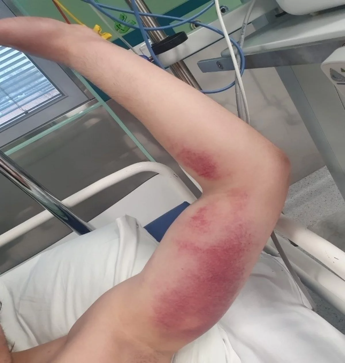 При осмотре врачи увидели, что у молодого человека отекла рука, на ладони начала отмирать ткань. Также пациент был обезвожен.