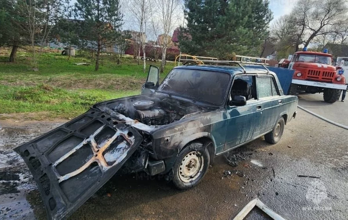 По предварительным данным, машина загорелась на улице Центральной из-за технической неисправности.