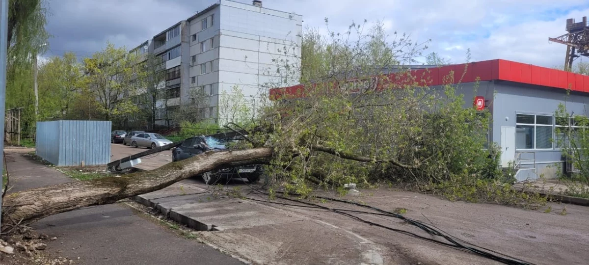 В Калуге на машину упали дерево и столб