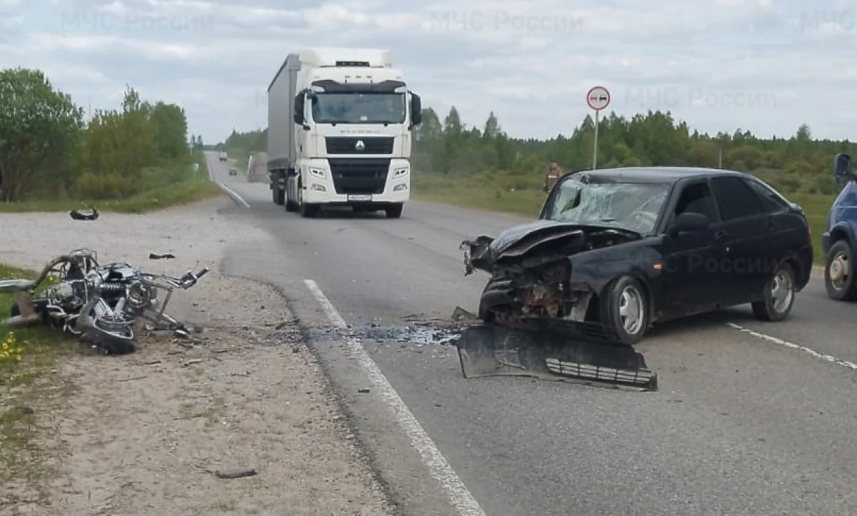 Там столкнулись мотоцикл «БМВ» и легковой автомобиль «Лада Приора», сообщили в МЧС.