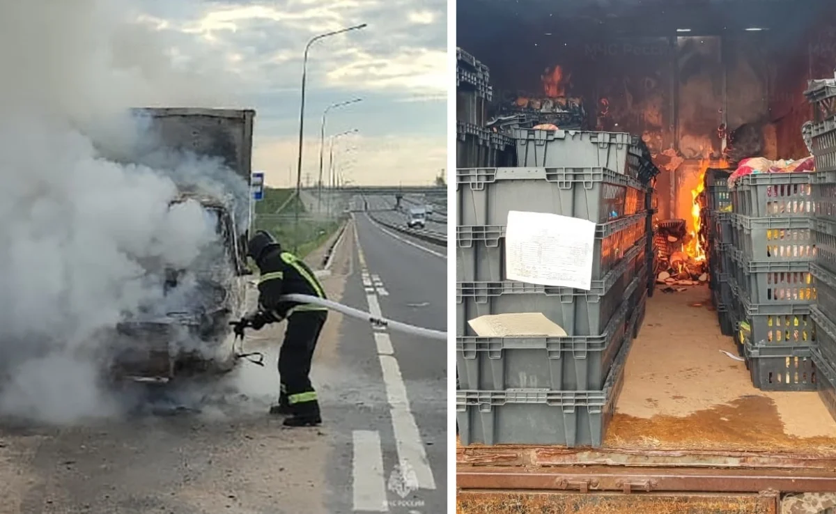 Кабина выгорела, но груз удалось спасти.
