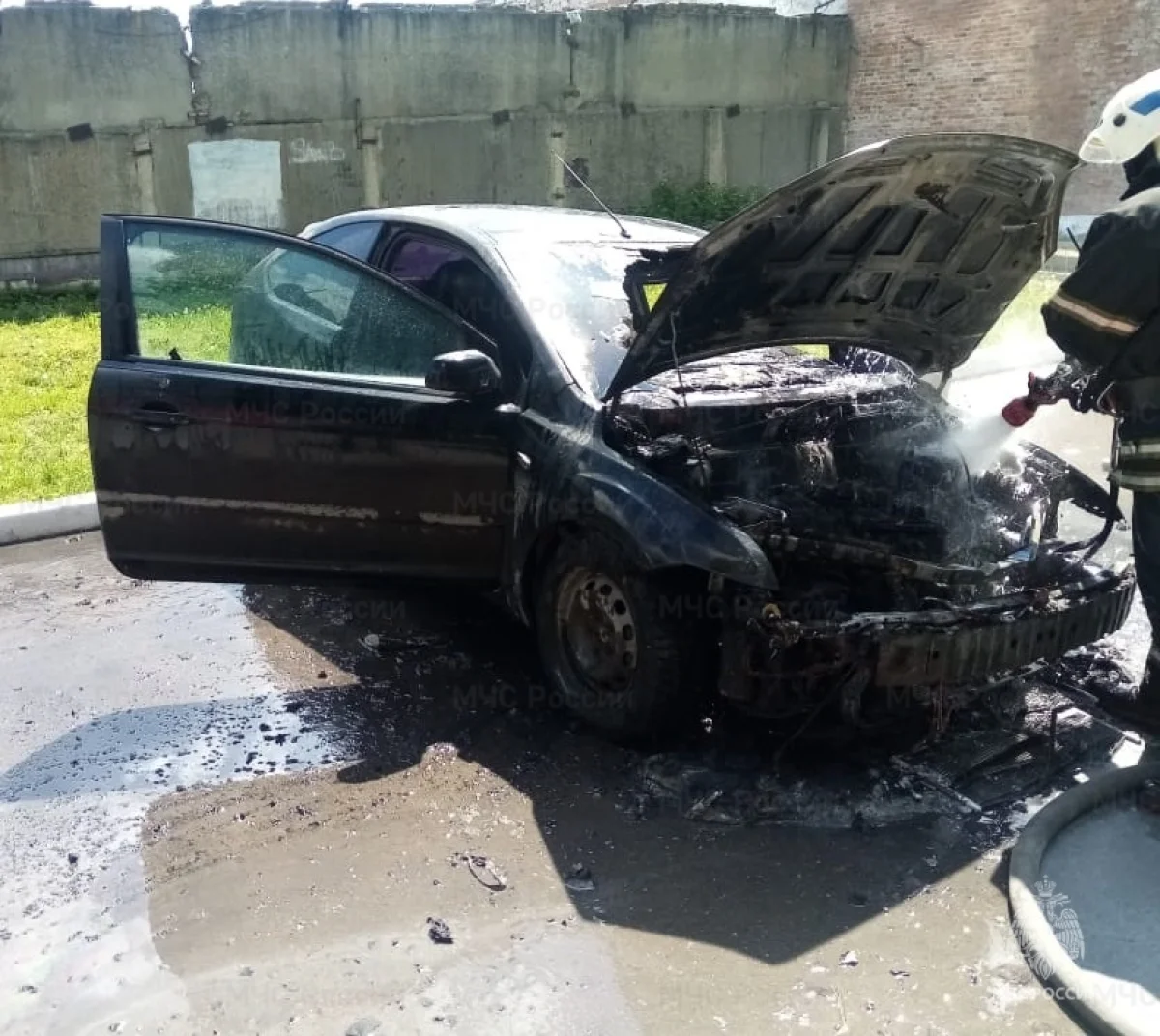 У легковушки полностью выгорел моторный отсек.