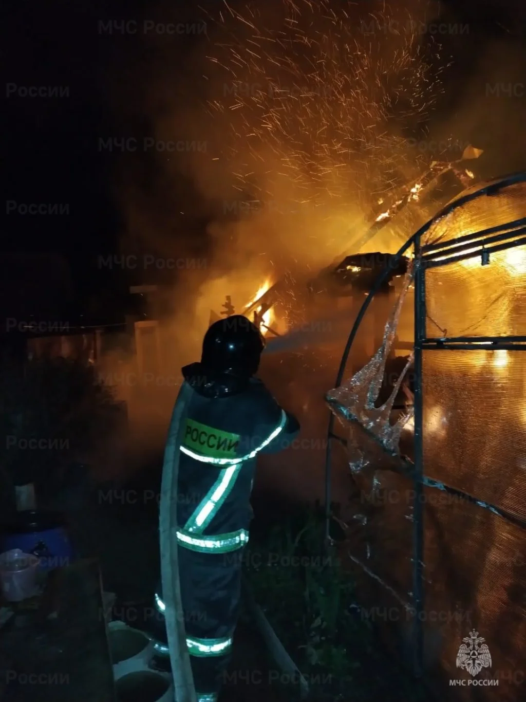 Огонь полностью уничтожил деревянную постройку у частного дома на улице Горького.