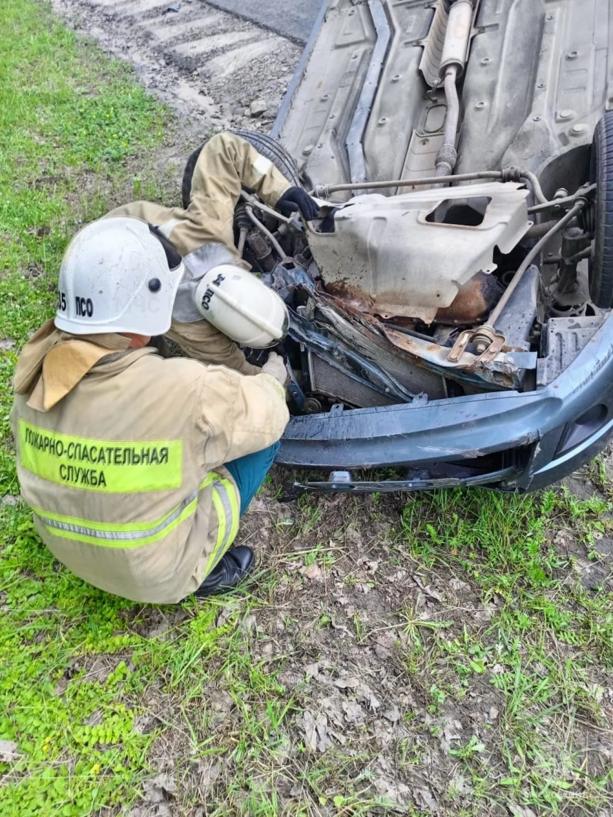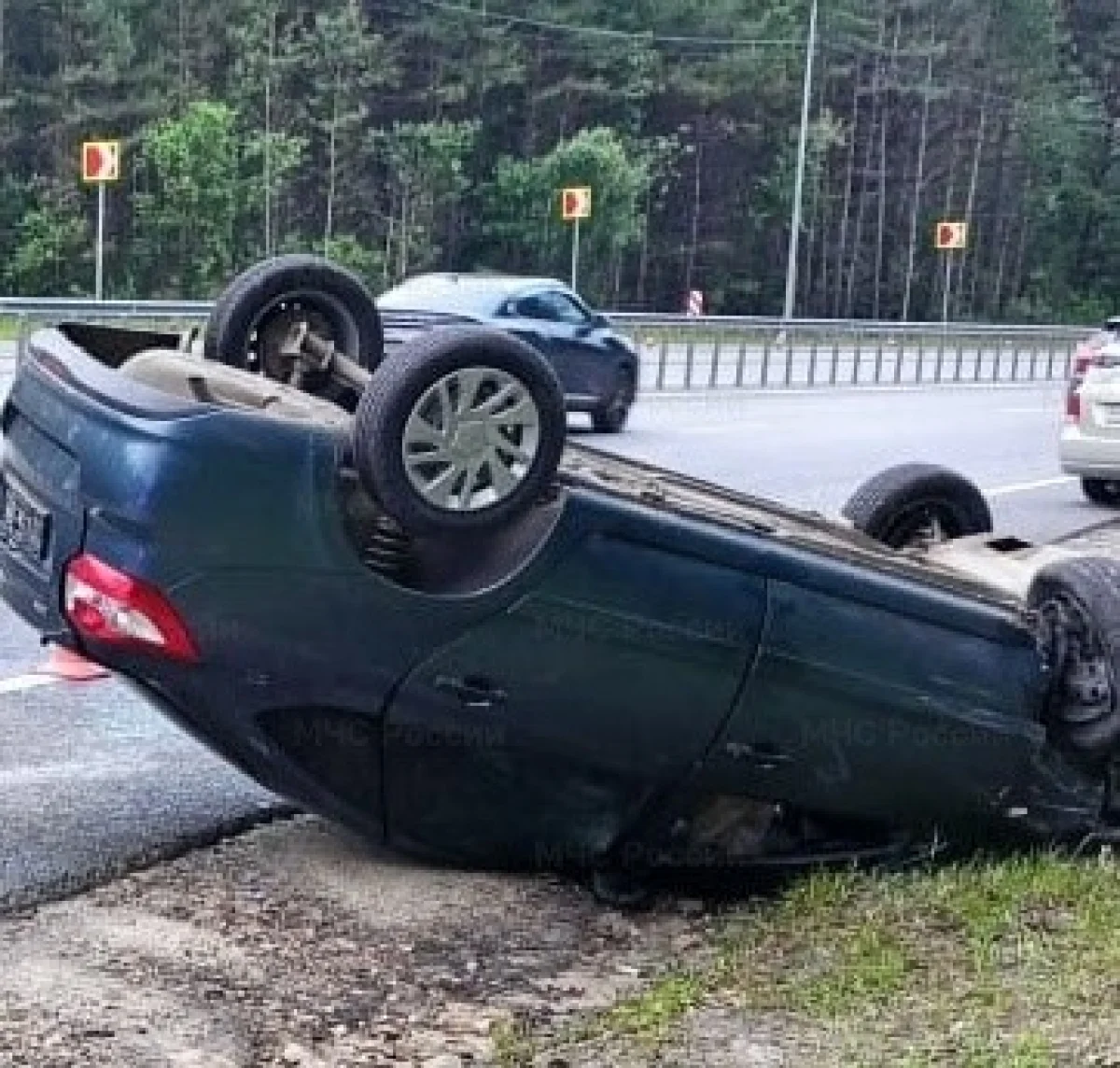Около 12 часов 25 минут автомобиль «Лада Гранта» наехал на дорожное ограждение и перевернулся.