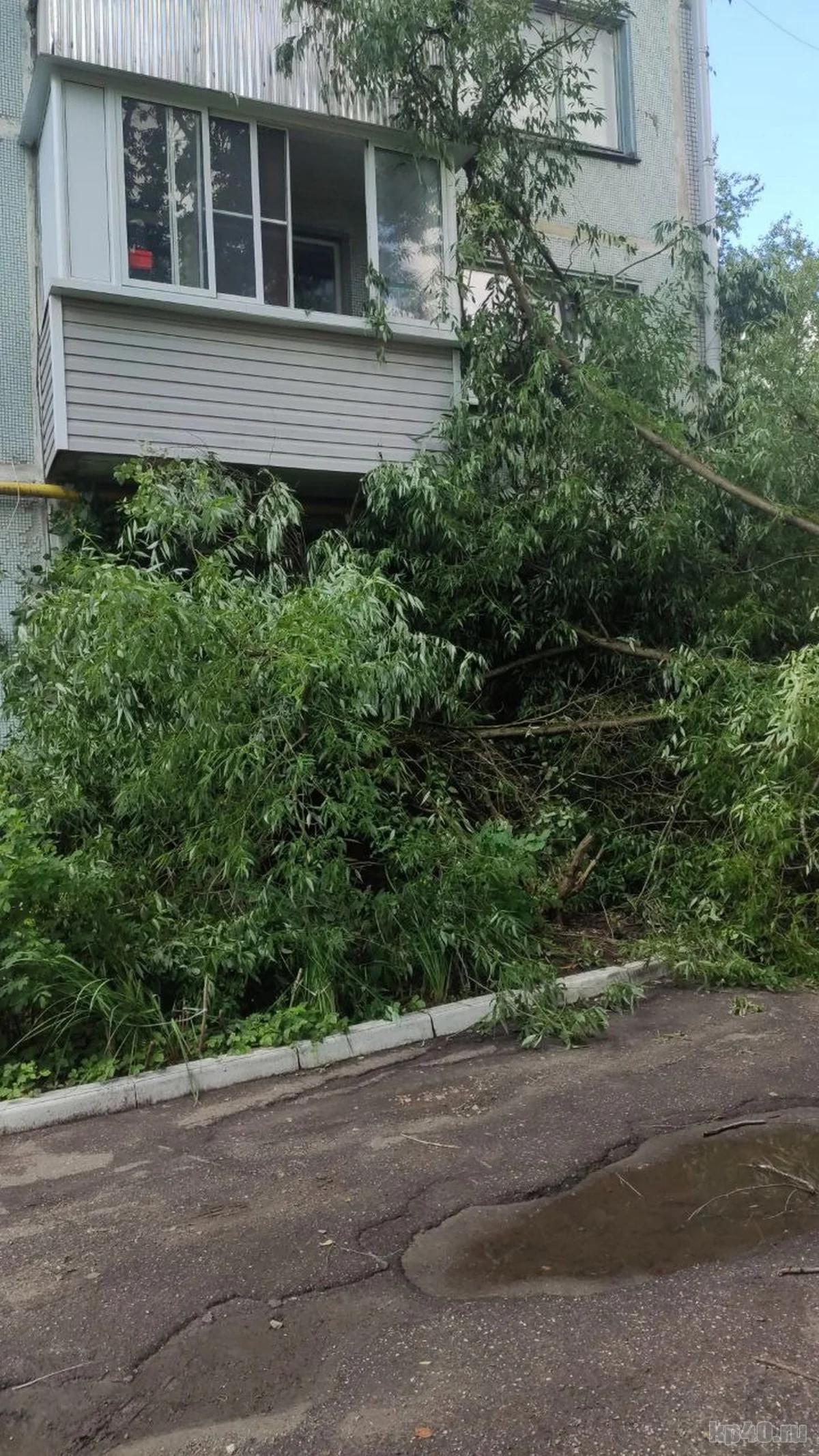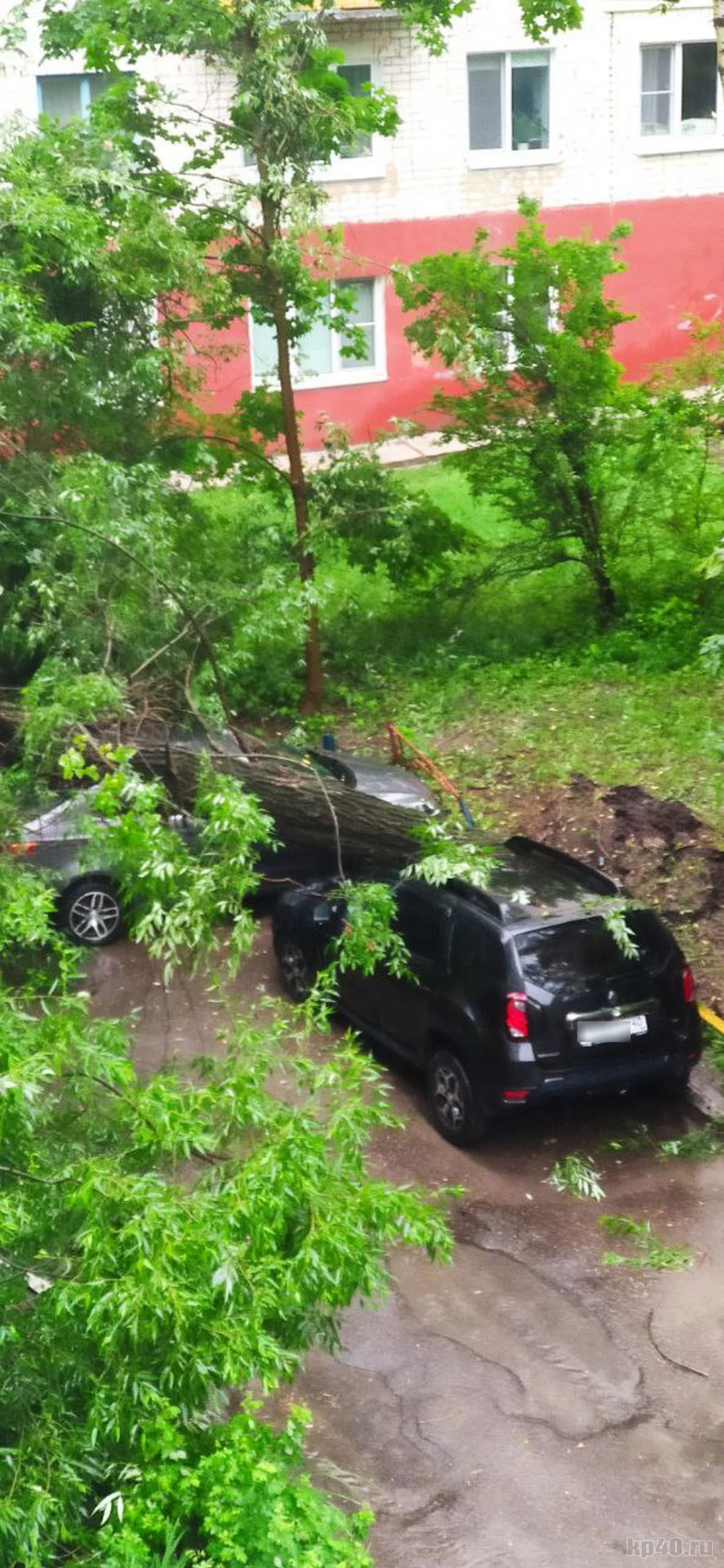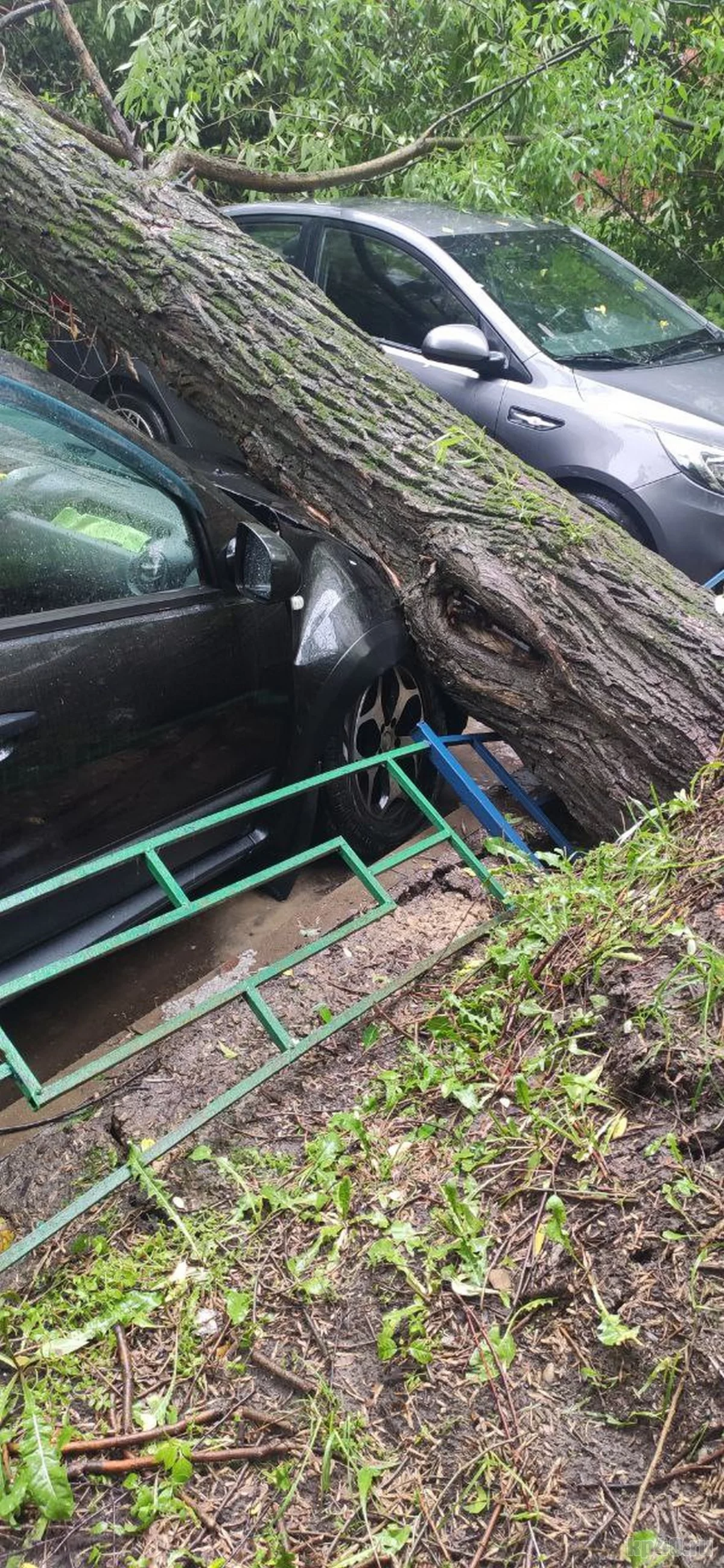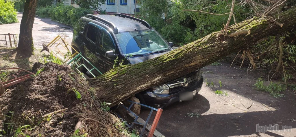 Дерево вывернуло с корнями. Пострадал припаркованный во дворе автомобиль «Рено».