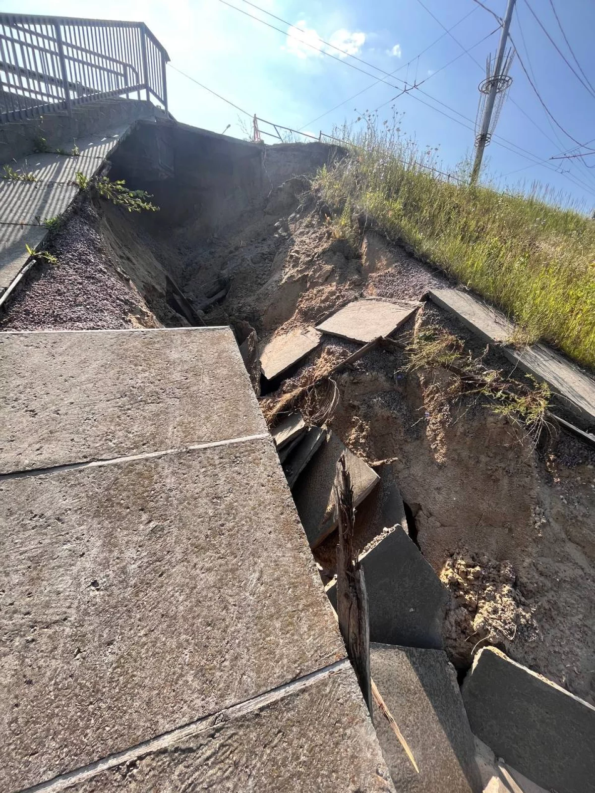Во вторник, 9 июля, мы выехали на место, чтобы оценить, какого масштаба обвал образовался и какие меры принимаются властями для недопущения чрезвычайной ситуации.