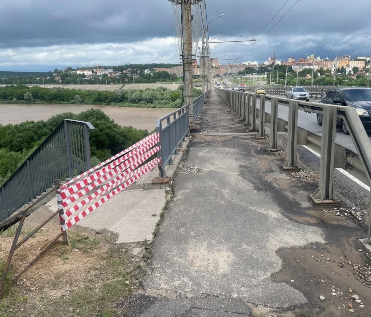 - Гагаринскому мосту тоже ничего не угрожает, - сказал Дмитрий Денисов. - Объект надёжно стоит на своём месте. Единственное – пешеходам на этом участке нужно быть осторожнее. Мы отметили его сигнальными лентами. В плановом порядке сегодня ограждение территории усилят.