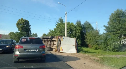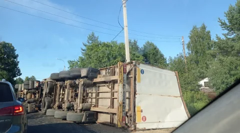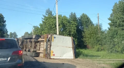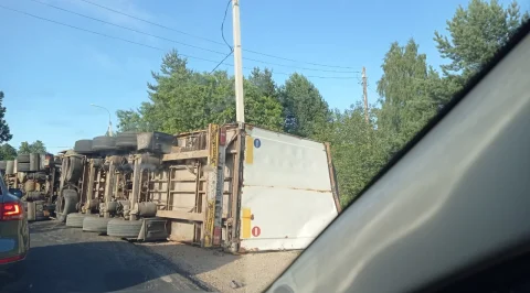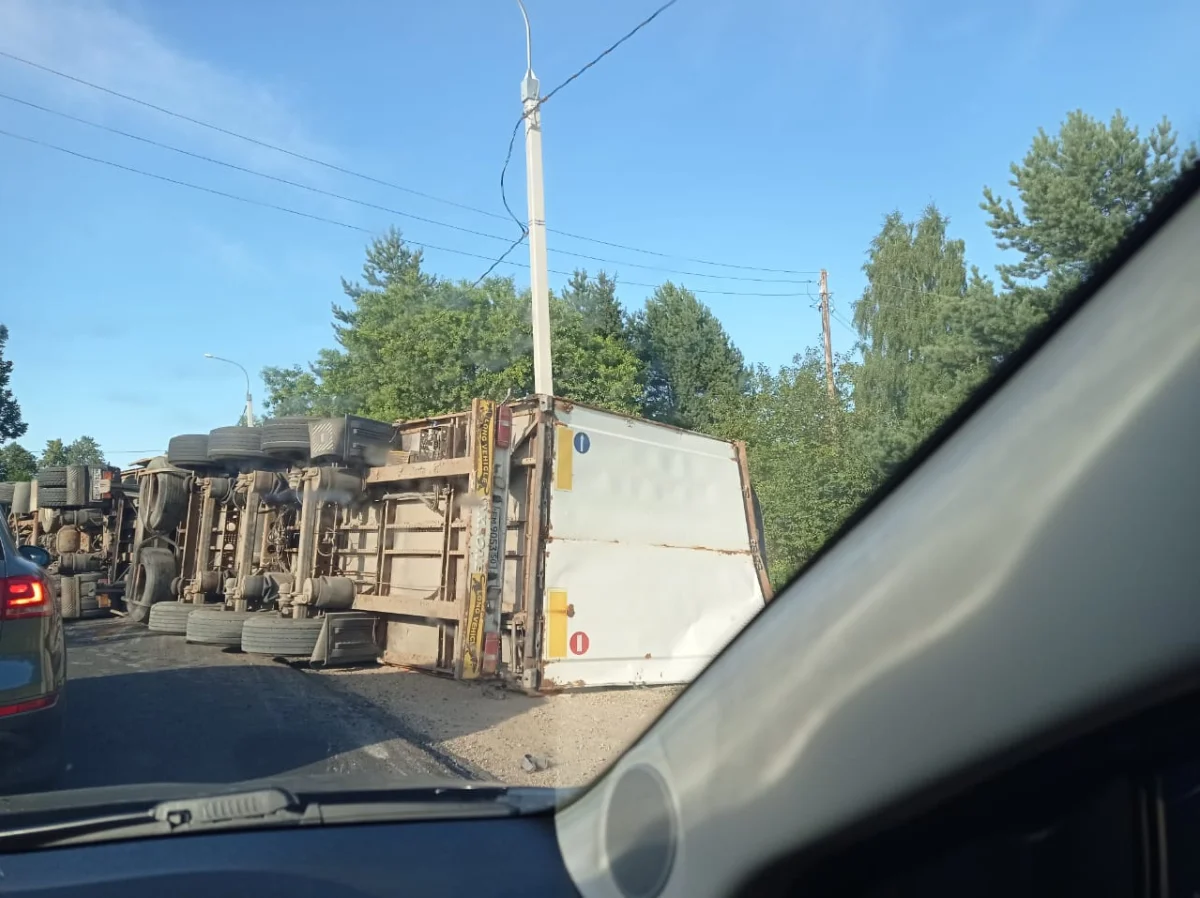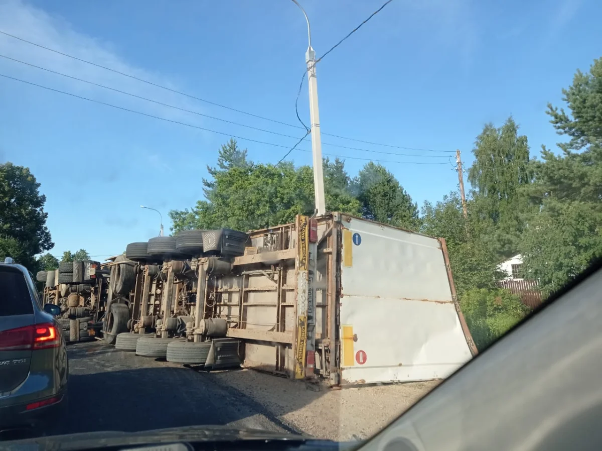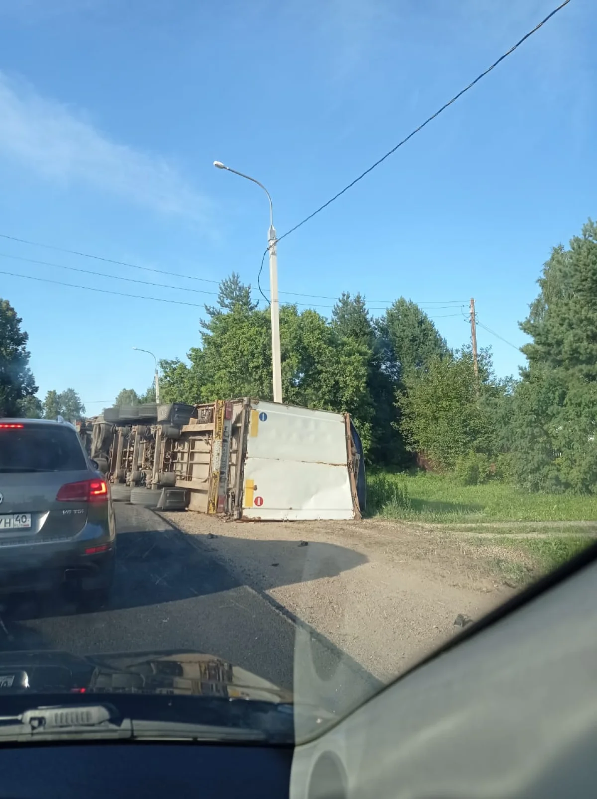 В пятницу, 12 июля, наш читатель прислал в редакцию фото перевернувшейся фуры.