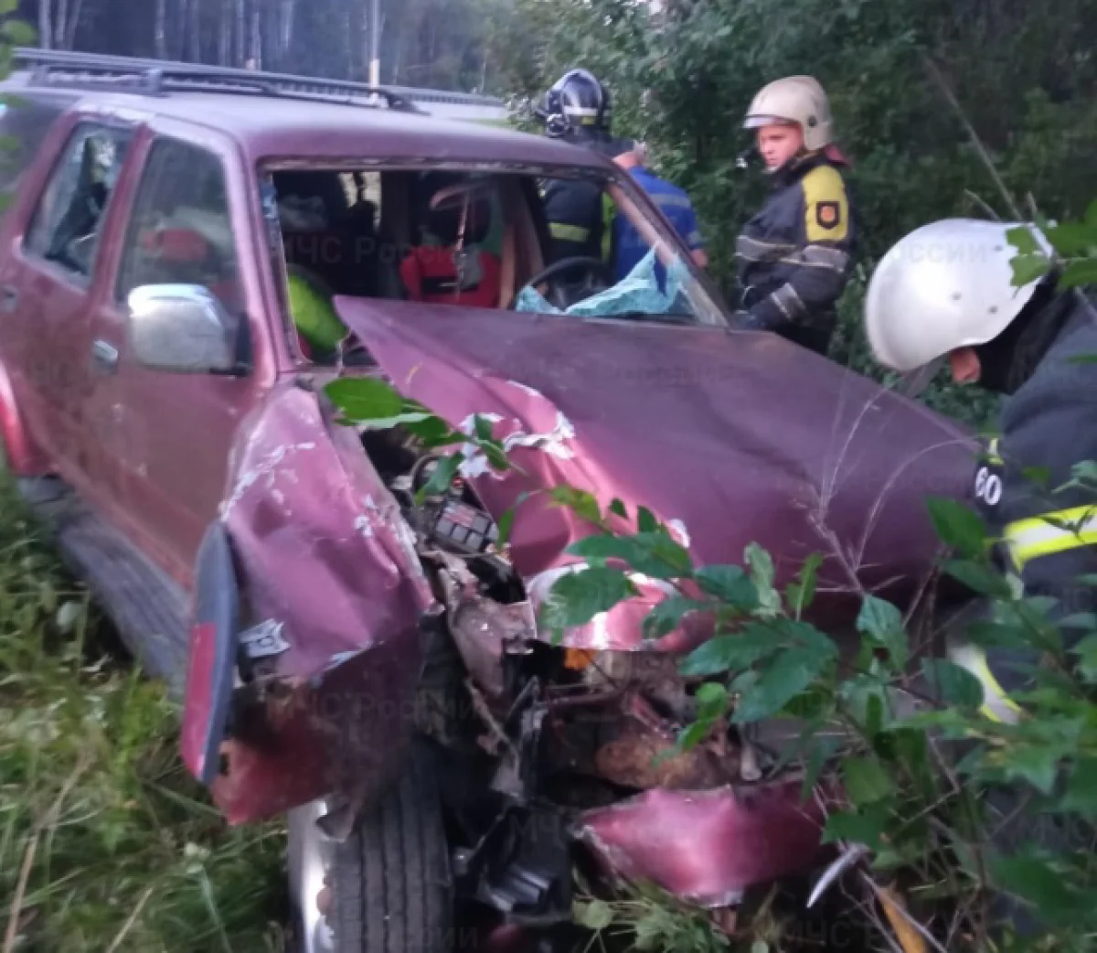 В половине пятого утра автомобиль «Грейт Вол» врезался в придорожный столб, затем съехал в кювет и перевернулся.