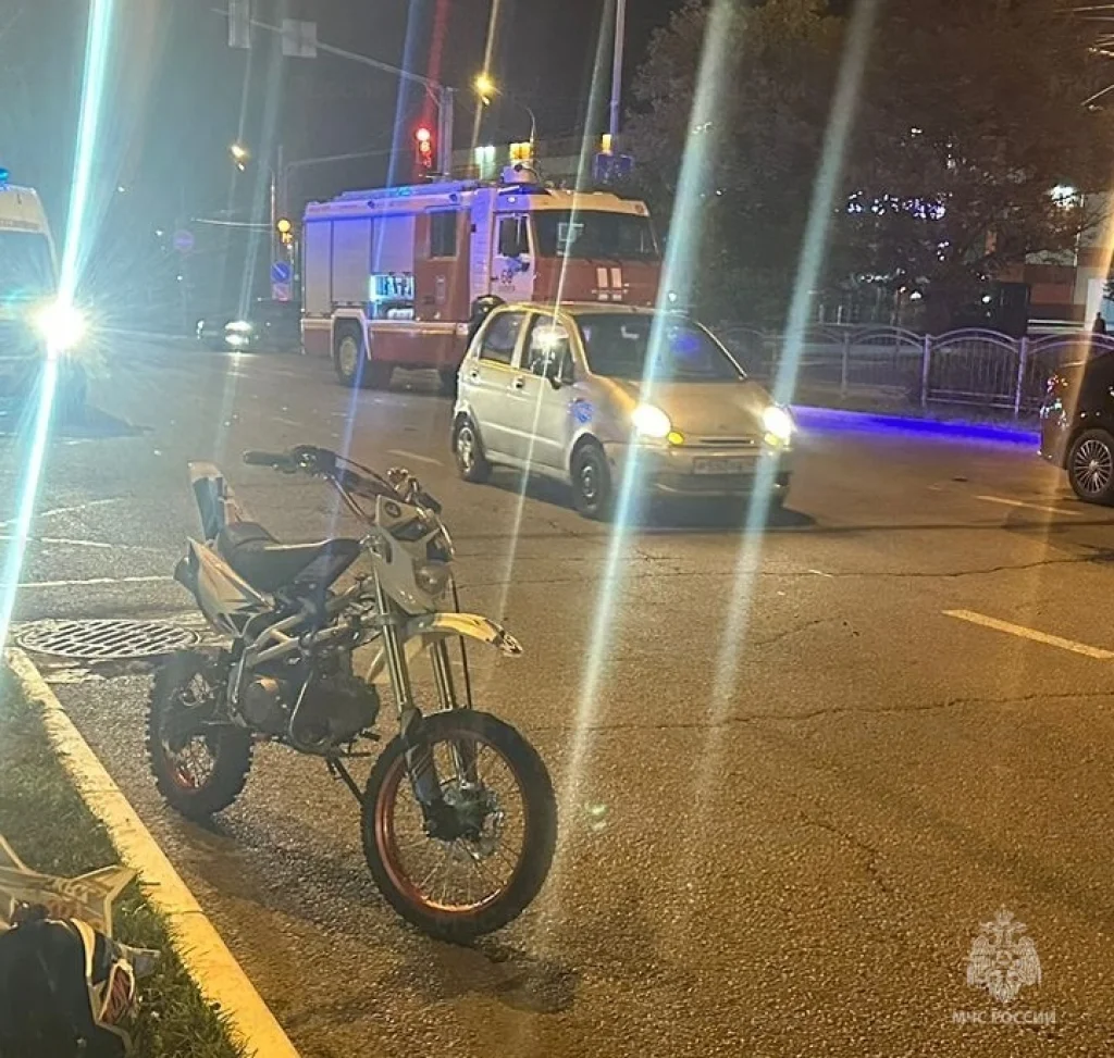 На правобережье Калуги питбайк KAYO столкнулся с Kia Rio