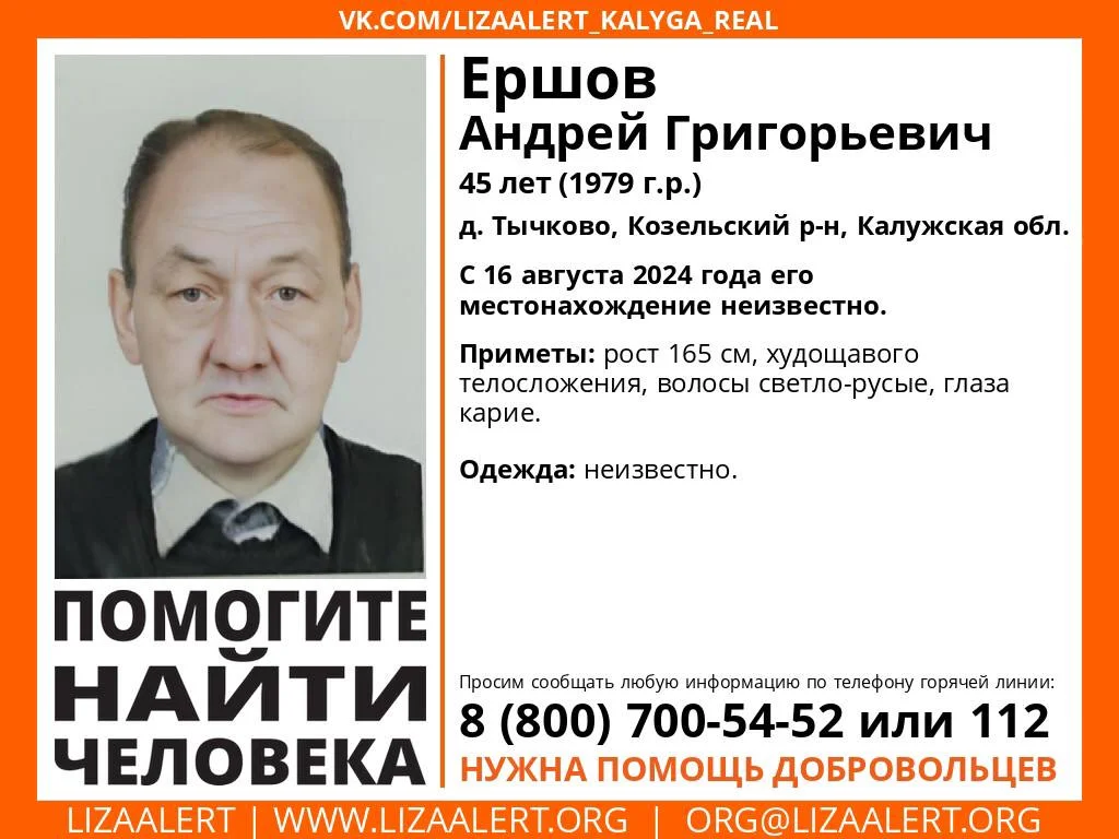 Местонахождение Ершова Андрея неизвестно с 16 августа.