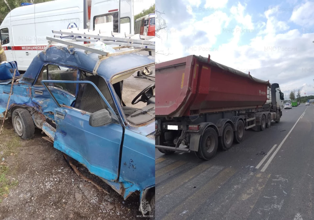 В Калужской области многотонный грузовик не поделил дорогу с легковым автомобилем
