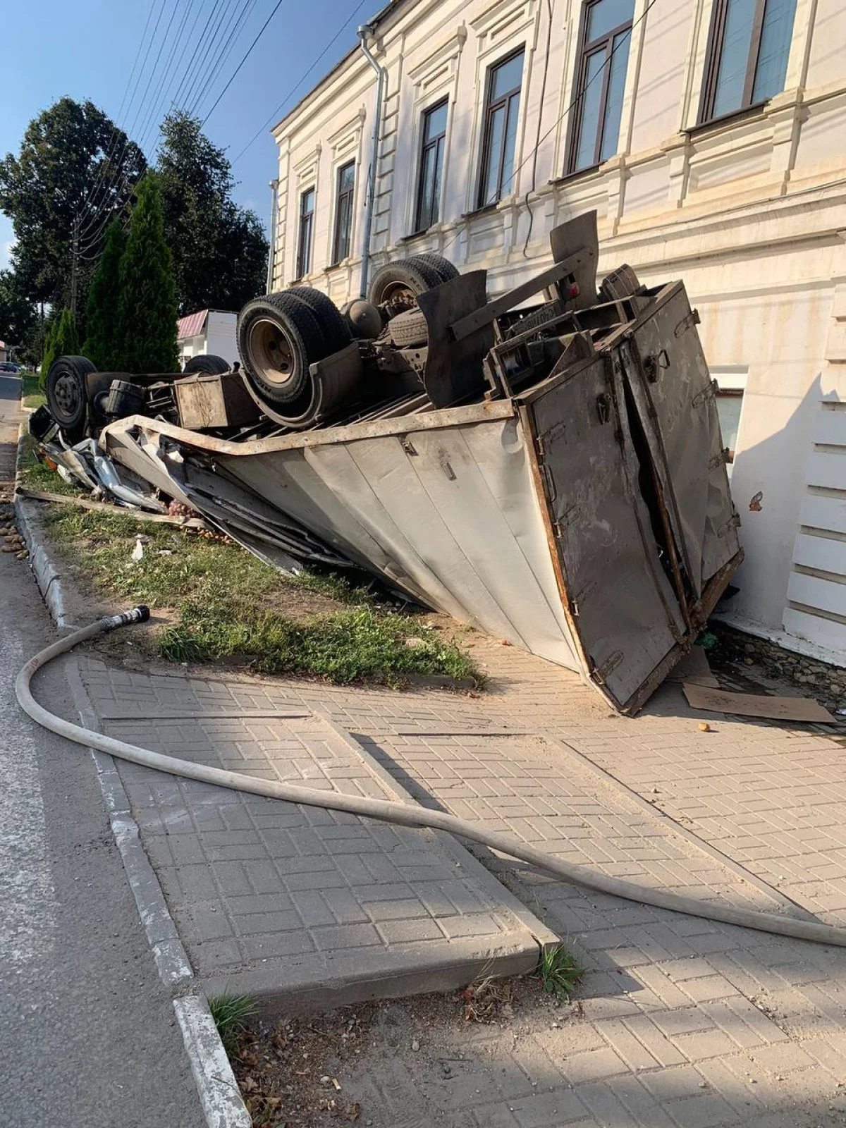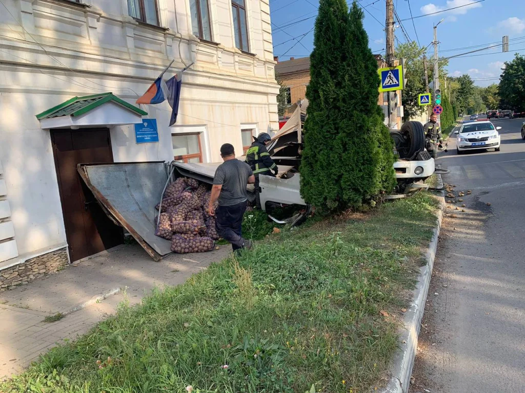 В Тарусе грузовик перевернулся и заблокировал вход в прокуратуру
