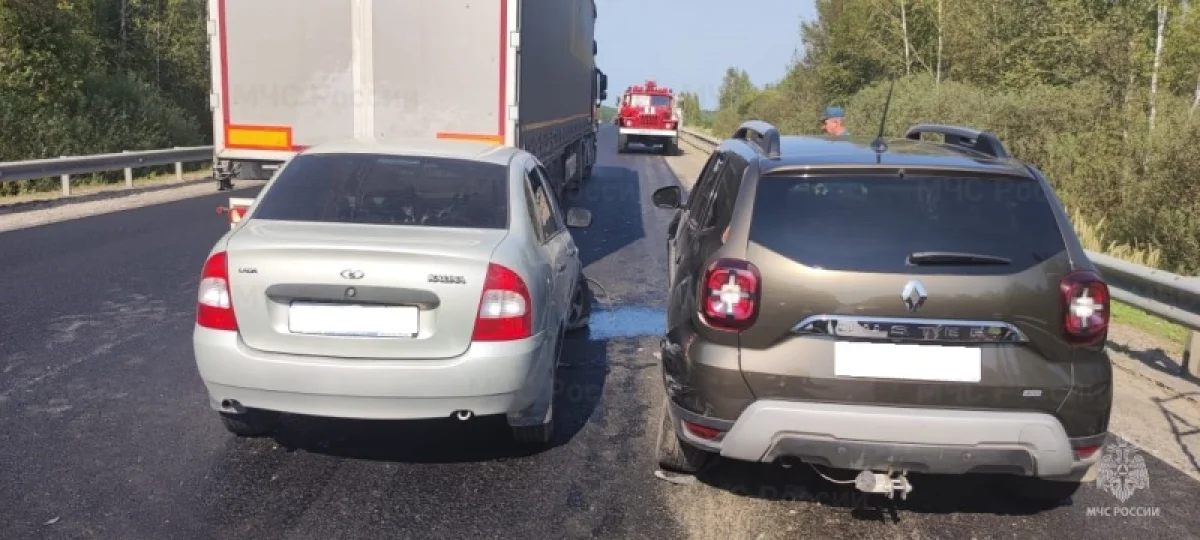 На автодороге М-3 "Украина" столкнулись "Лада Калина", фура "Мерседес" и автомобиль "Рено".